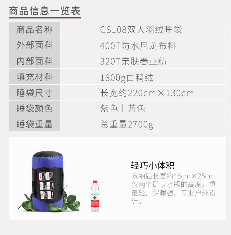 • 다운 깃털 침낭 2900G (다운 2100g 포함) 블루