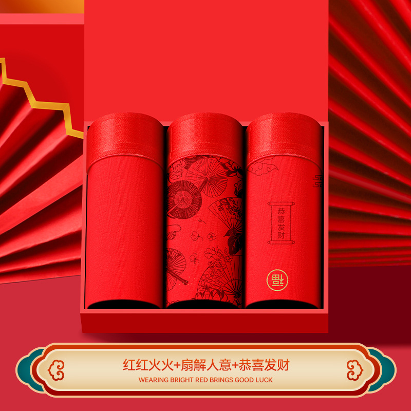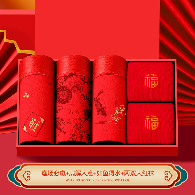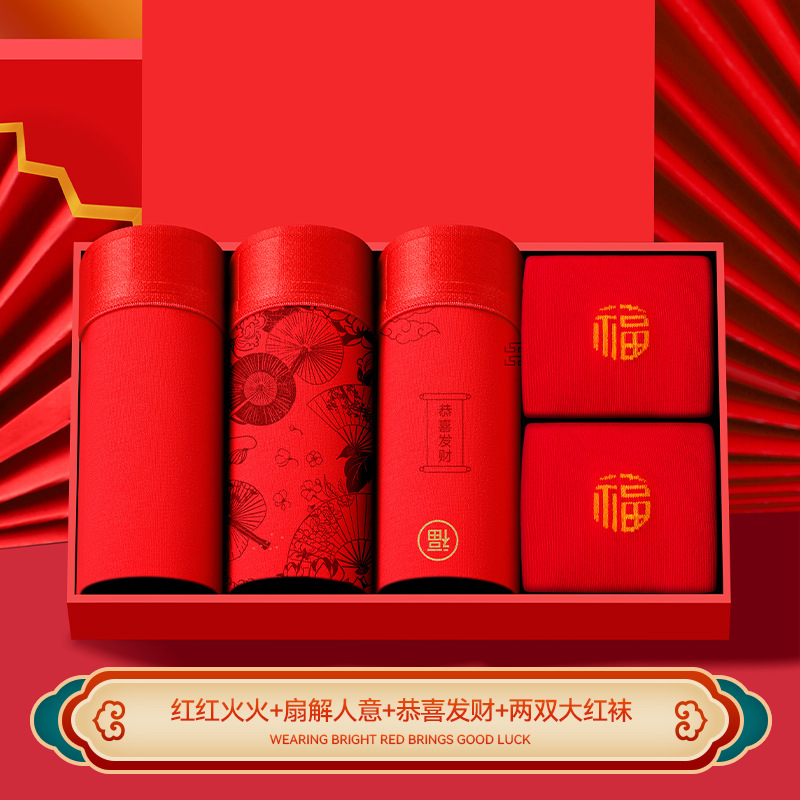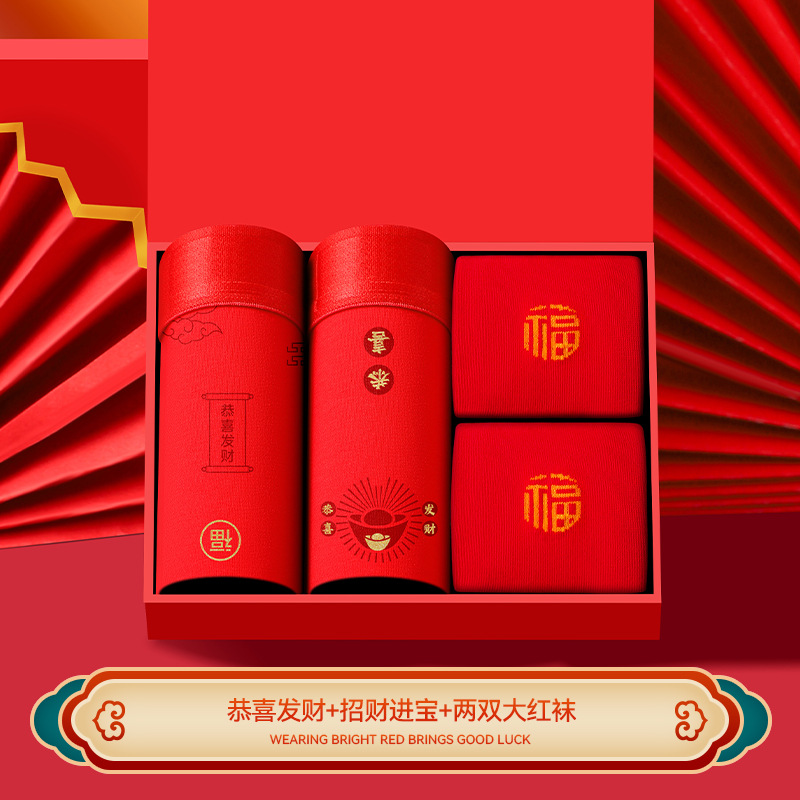 • 번창하세요/부채가 사람의 마음을 이해합니다/부자되신거 축하합니다 + 빨간 양말 두 켤레