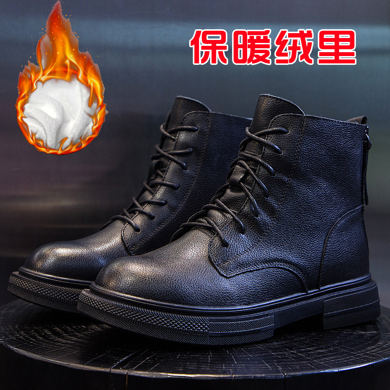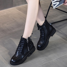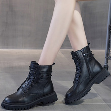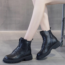 여성용 1층 소가죽 마틴 부츠, 2025년 신상 가죽 부츠, 가을 겨울용, 안감 기모, 한국 스타일, 더블 지퍼 숏부츠스토어 가기