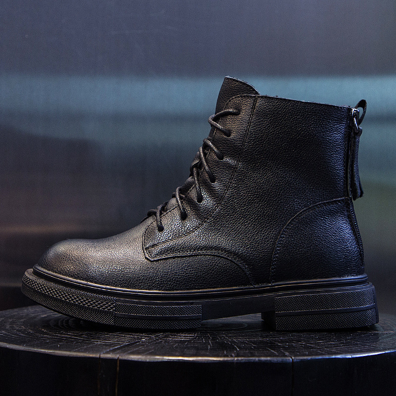 여성용 1층 소가죽 마틴 부츠, 2025년 신상 가죽 부츠, 가을 겨울용, 안감 기모, 한국 스타일, 더블 지퍼 숏부츠