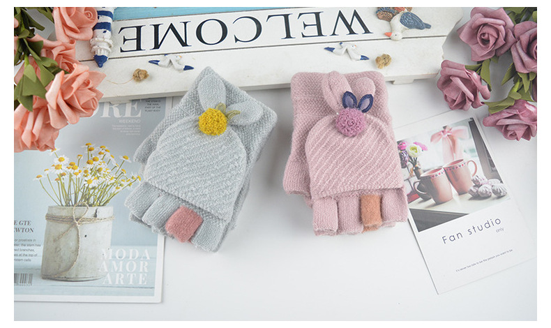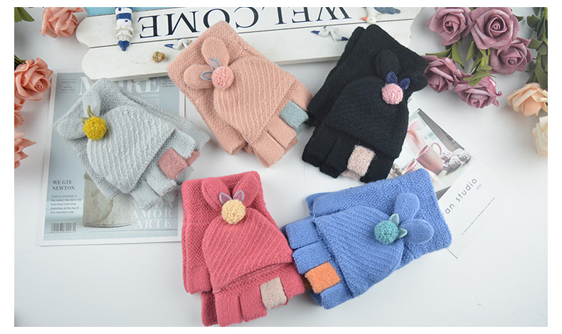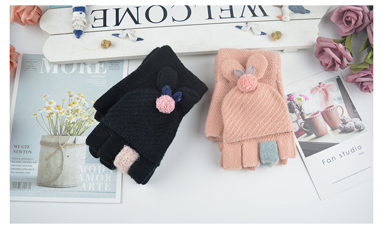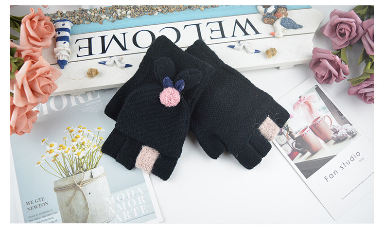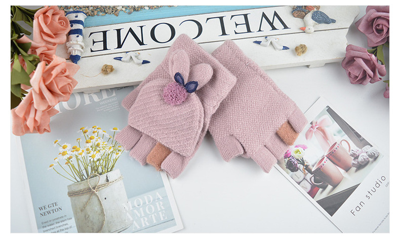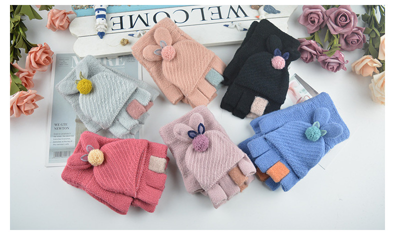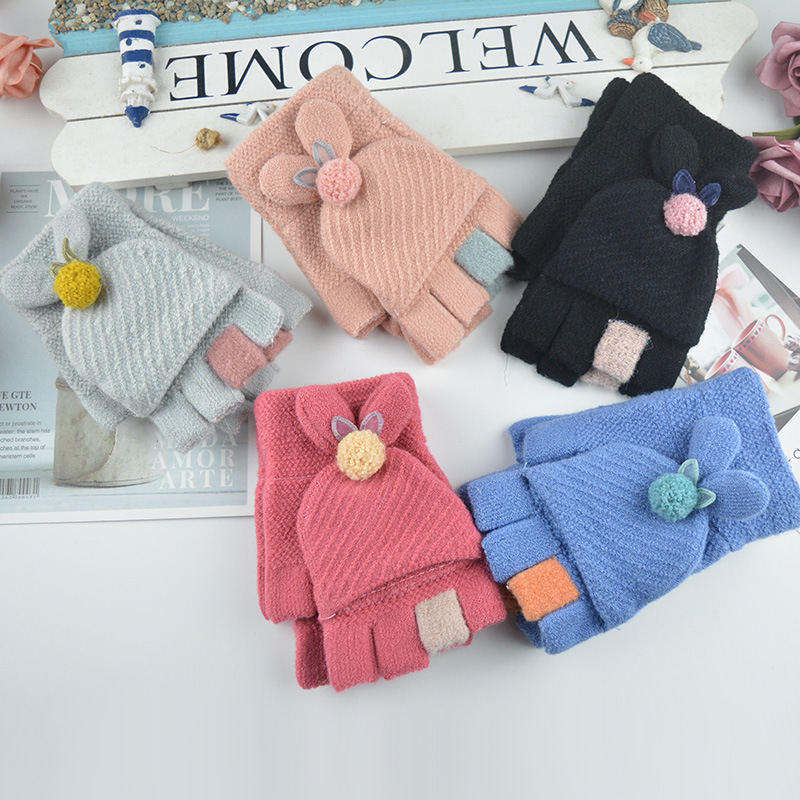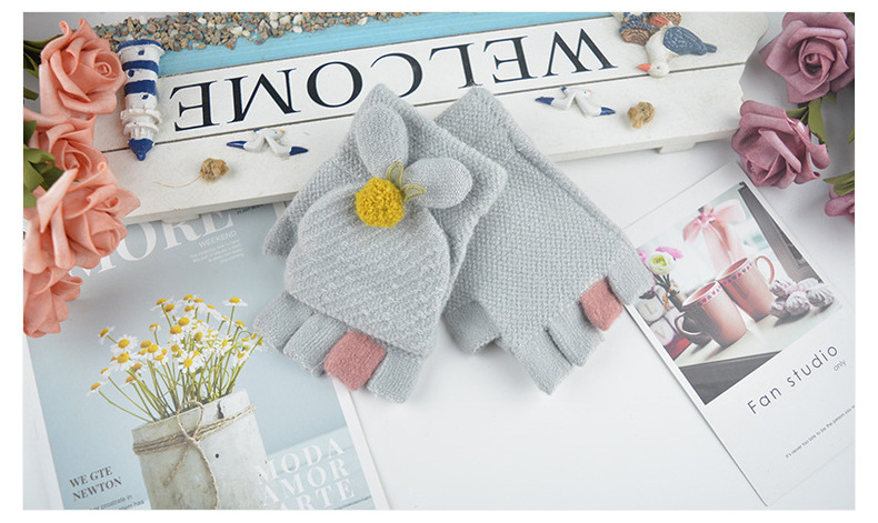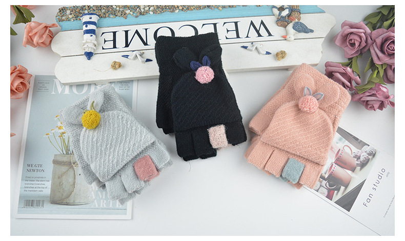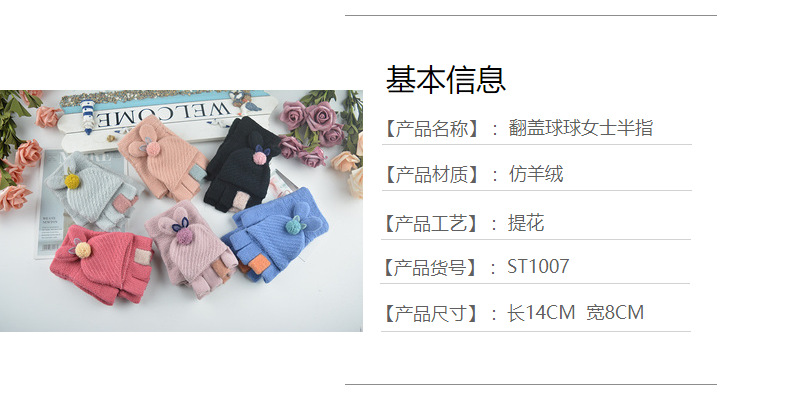 새로운 숙녀 반 손가락 플립 따뜻한 장갑 겨울 야외 승마 학생 쓰기 반 손가락 장갑 공 도매스토어 가기