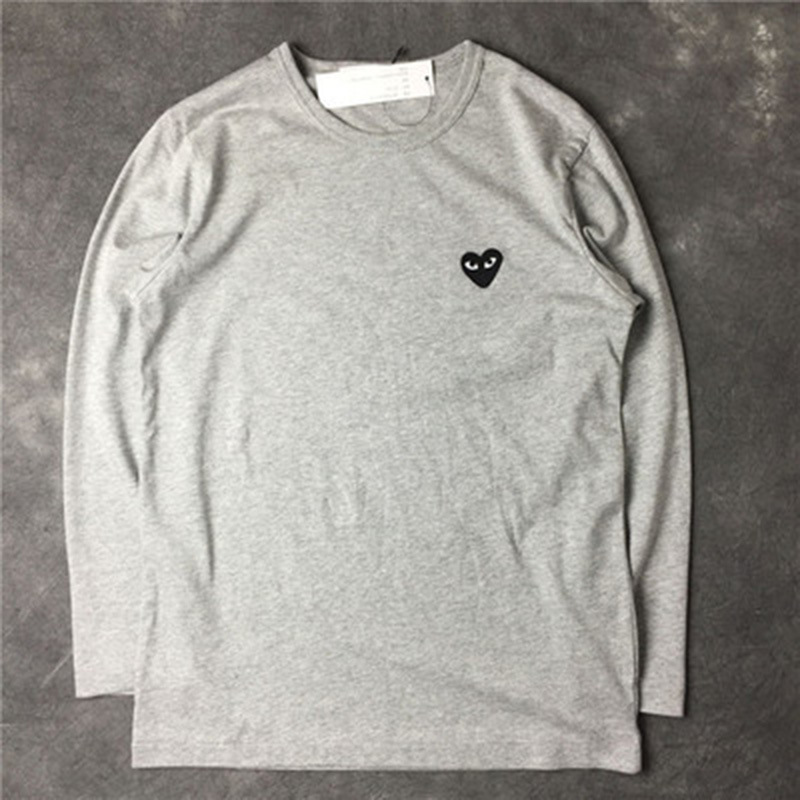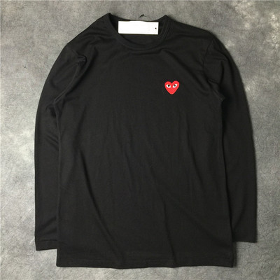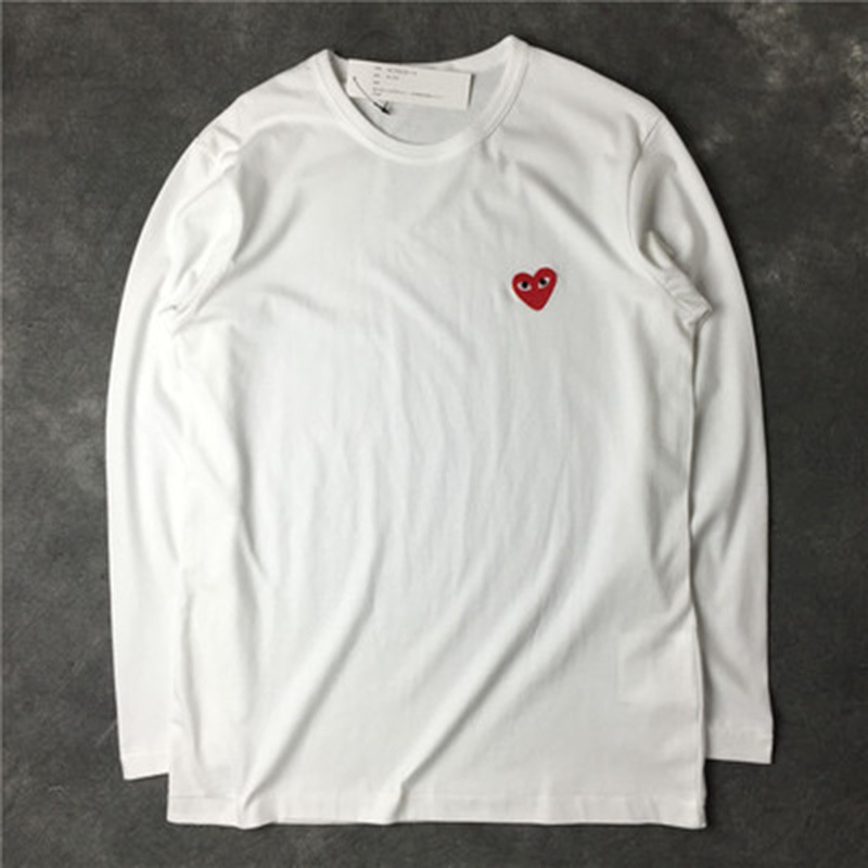일본식 플레이 패션 브랜드 수 놓은 하트 레드 하트 스트라이프 남성 긴팔 바닥 셔츠 커플의 전체 소매 티셔츠 남성과 여성스토어 가기