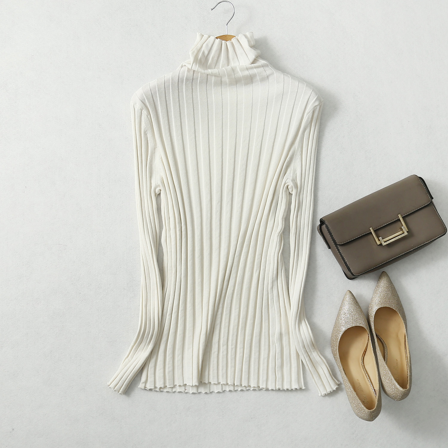 抽条桑蚕丝、羊绒、莱卡混纺毛衣,