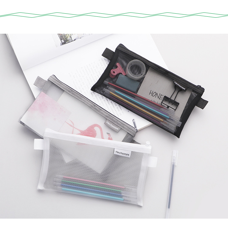 학생용 심플 투명 메쉬 펜 가방 보관 가방 시험 휴대용 펜 가방 대용량 문구 가방 도매스토어 가기