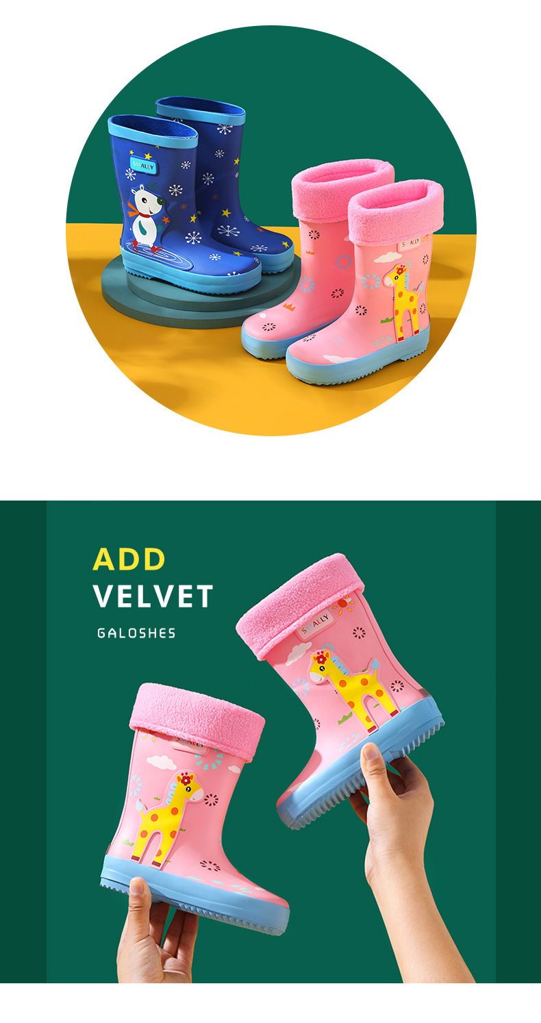 어린이 고무 장화 어린이 미끄럼 방지 방수 장화 초등학생 소년 소녀 아기 장화를위한 대형 어린이 물 신발스토어 가기