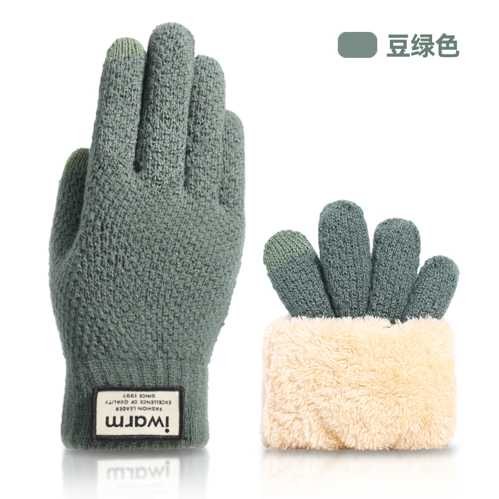 가을, 겨울 터치 스크린 장갑 남성용 벨벳 더블 레이어 두꺼운 따뜻한 양모 니트 장갑 국경스토어 가기