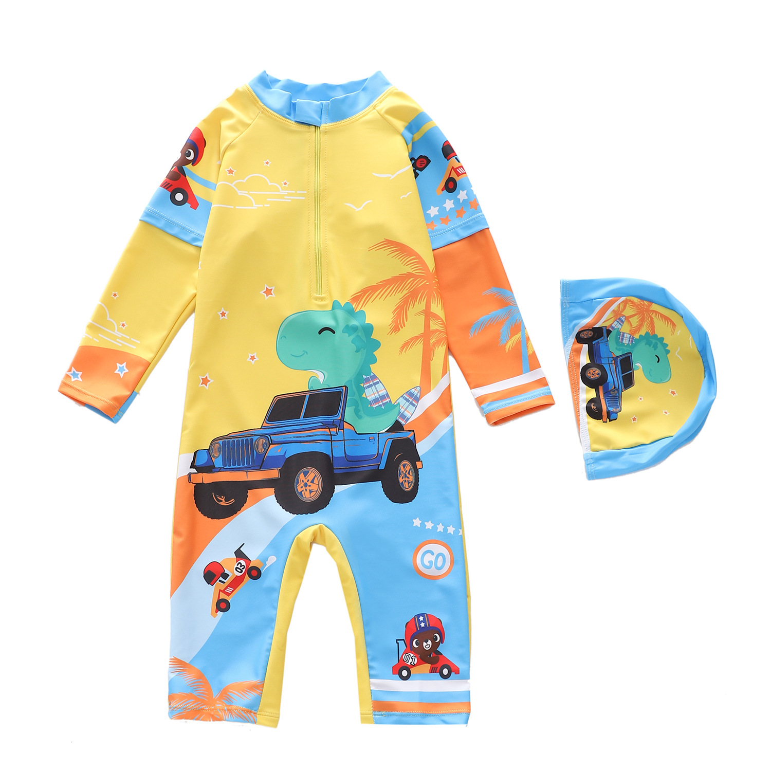 어린이 수영복 남아용 긴팔 오부바지 수영복 소년용 중대형 어린이 서핑 수영복 자외선 차단 트렌디 프린트스토어 가기