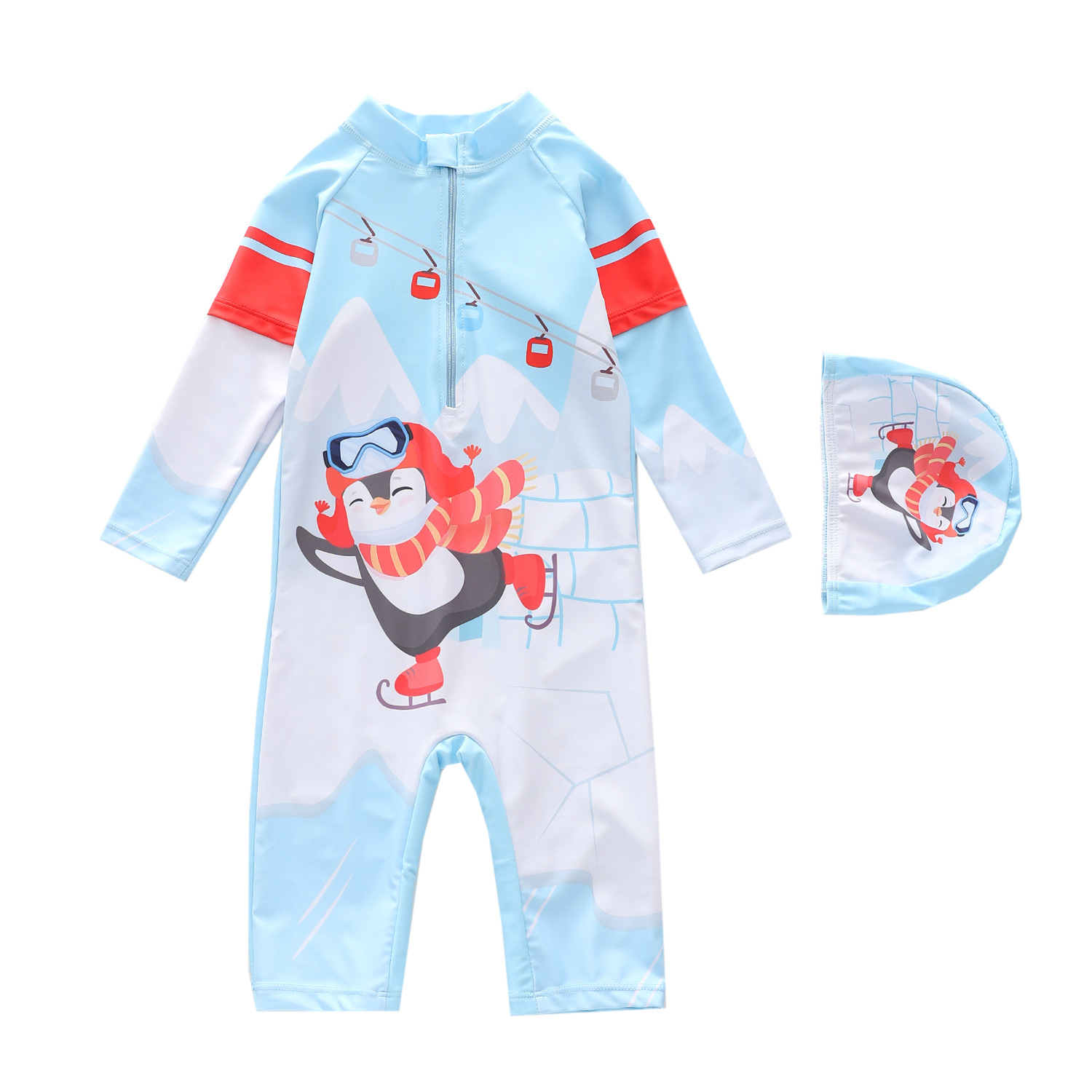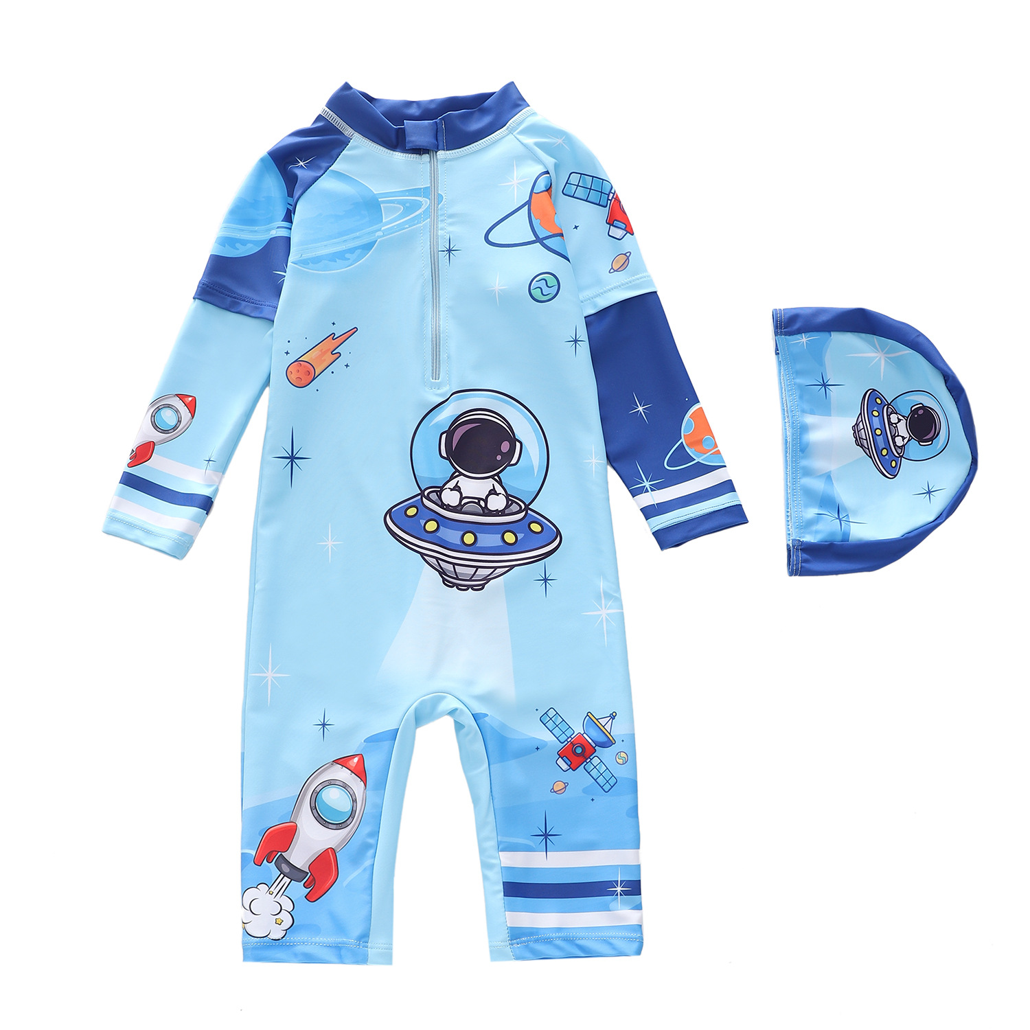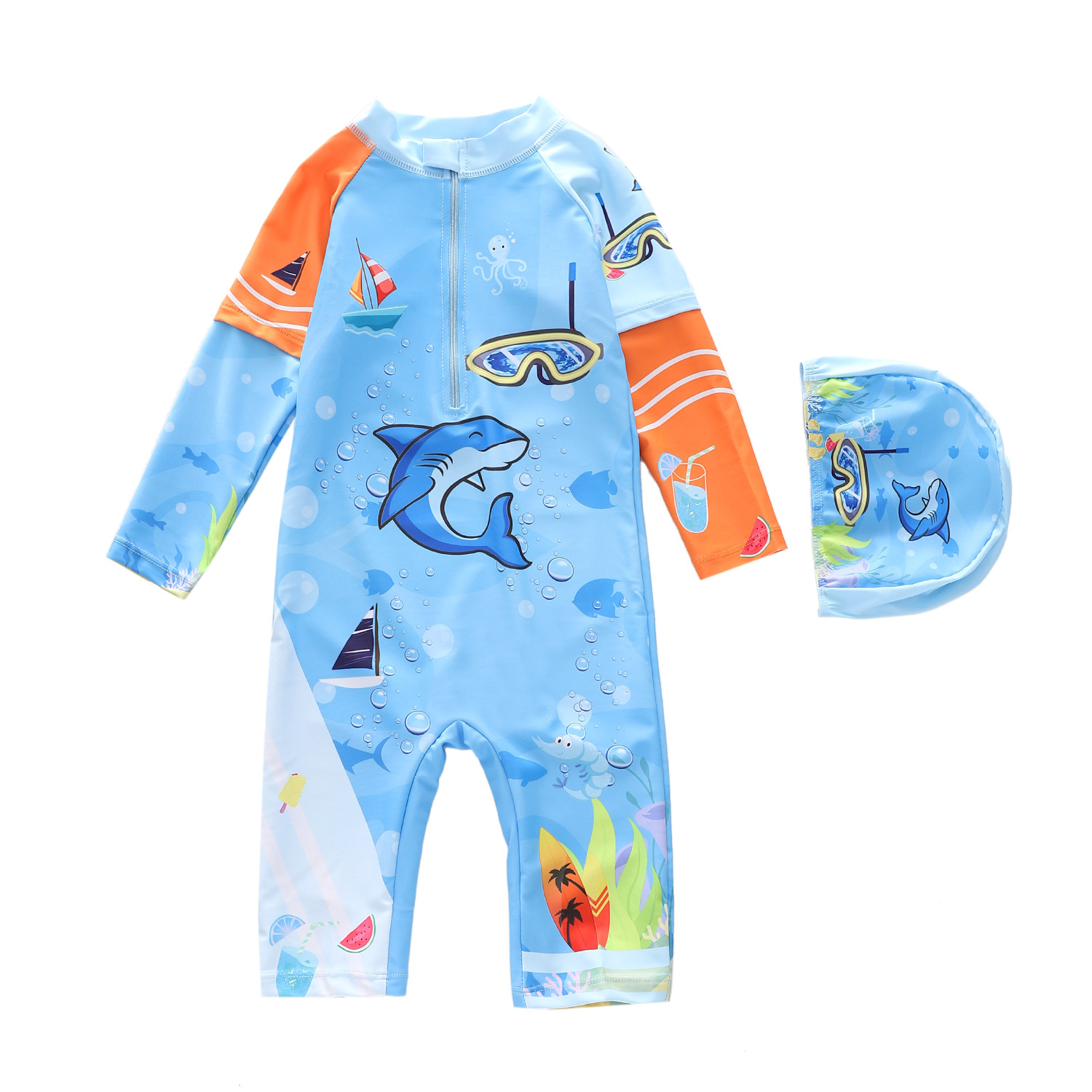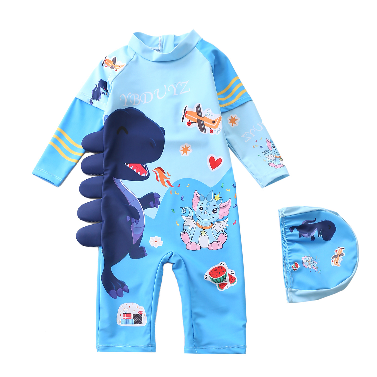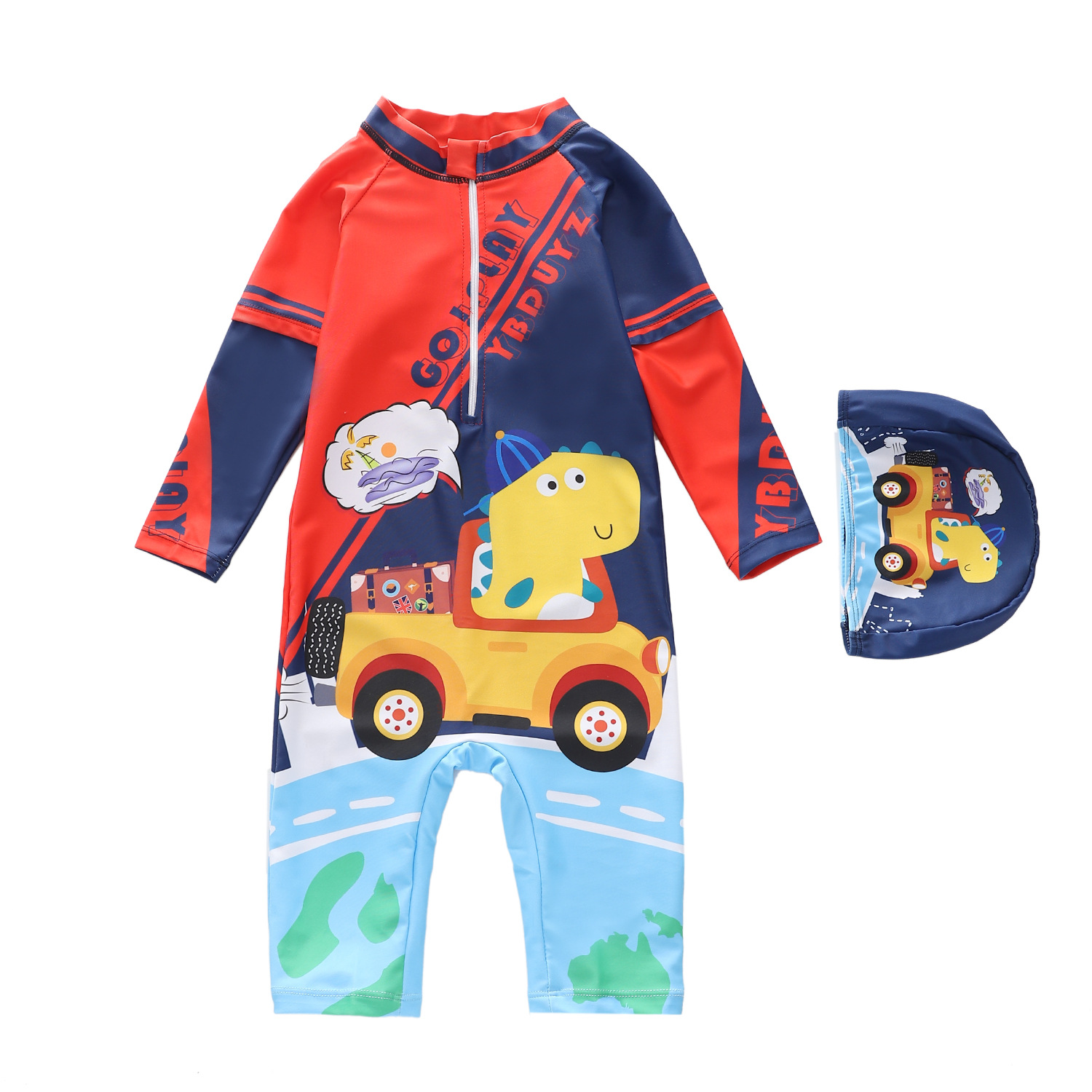 어린이 수영복 남아용 긴팔 오부바지 수영복 소년용 중대형 어린이 서핑 수영복 자외선 차단 트렌디 프린트