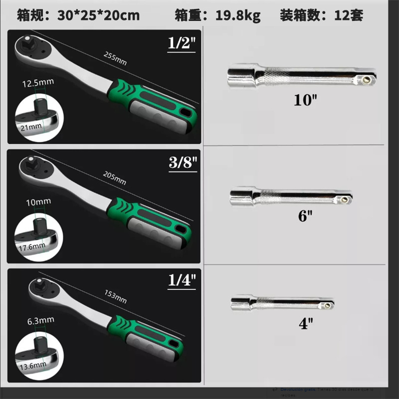 • [3/8 Zhongfei] 그림과 같이 구부러진 손잡이가있는 72 톱니 래칫 렌치 *