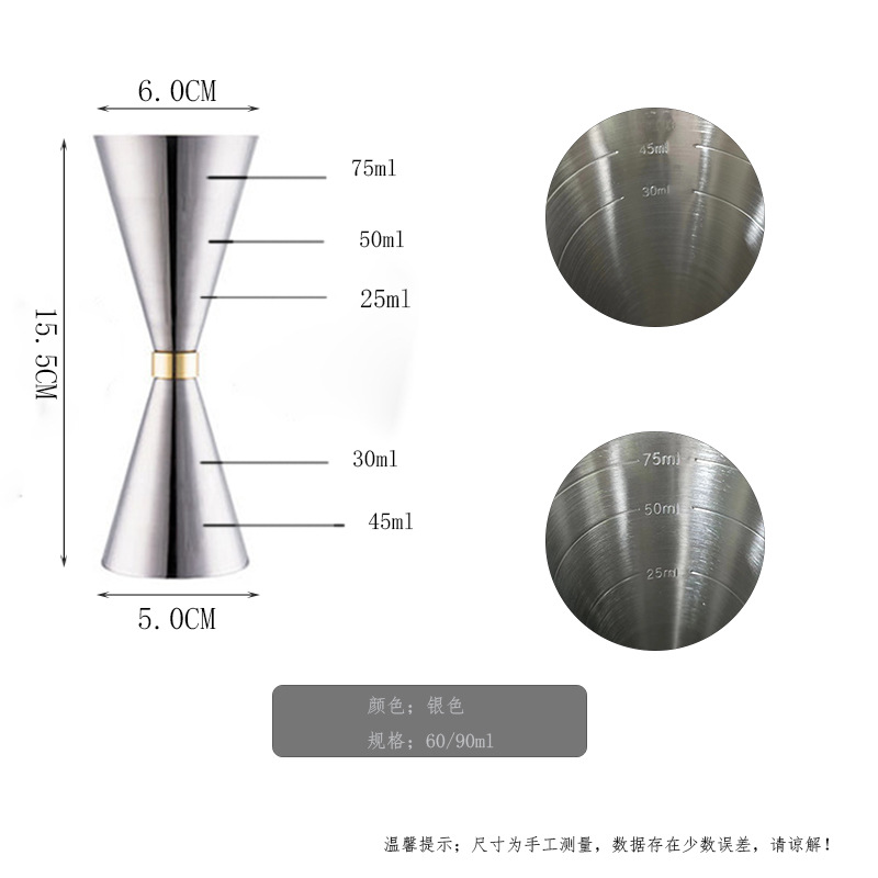 스테인레스 스틸 발목 컵 와인 테이커 셰이커 칵테일 더블 헤드 측정 컵 30/45/60 지거 (스케일 포함)스토어 가기