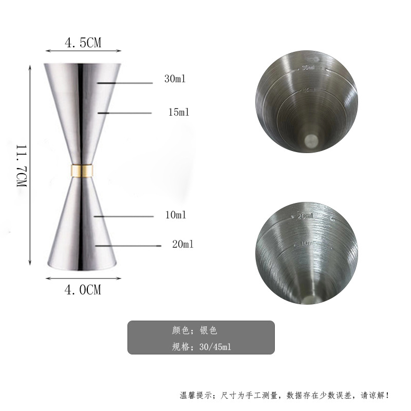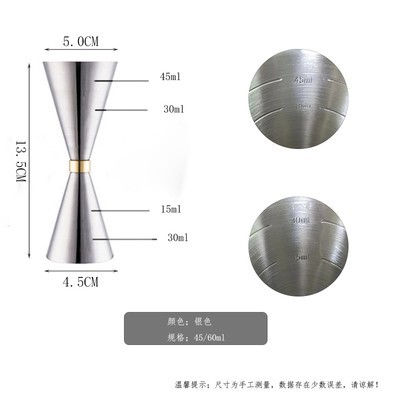 스테인레스 스틸 발목 컵 와인 테이커 셰이커 칵테일 더블 헤드 측정 컵 30/45/60 지거 (스케일 포함)