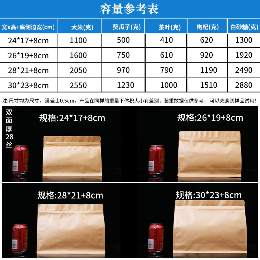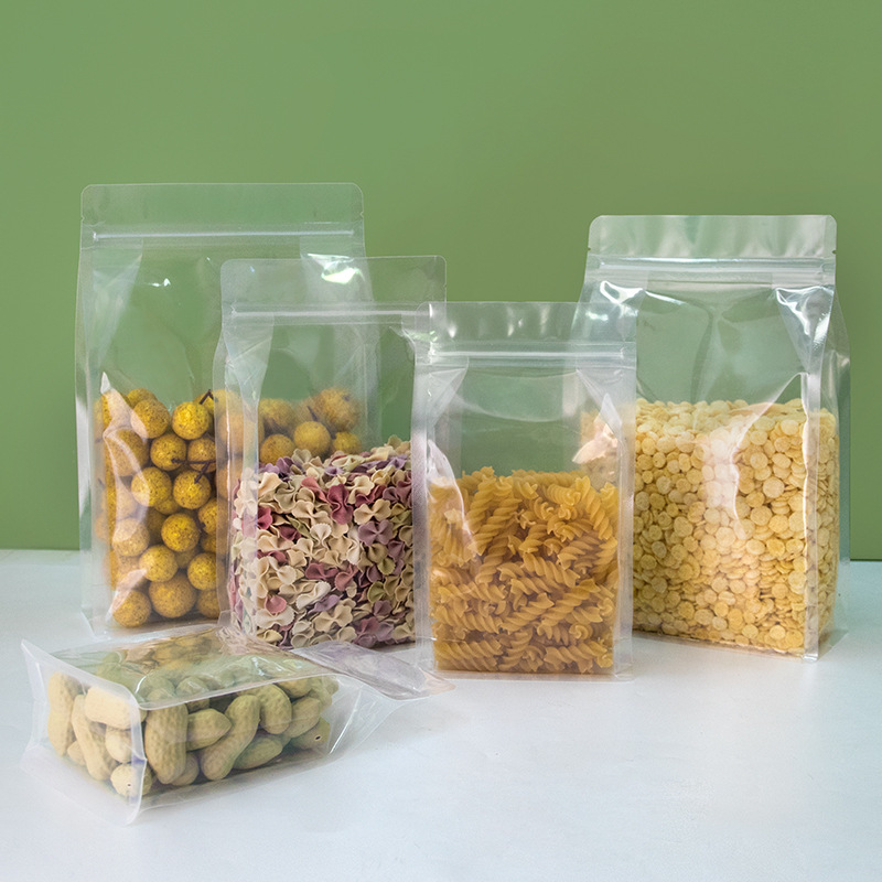 플라스틱 식품 토트백 투명 지퍼 젖빛 자립형 가방 건조 상품 밀봉 8 면 재고 자체 밀봉 포장 가방