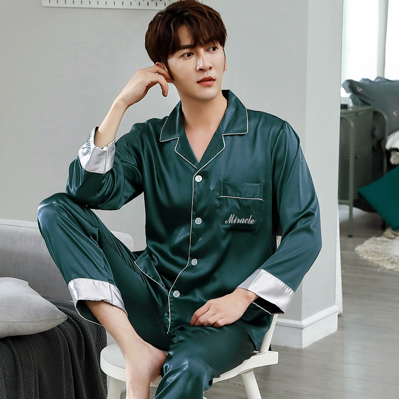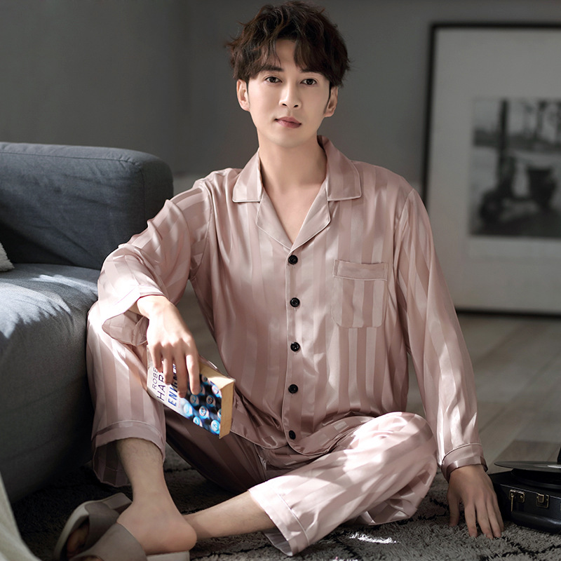 잠옷 남자 봄과 가을 긴팔 실크 시뮬레이션 청소년 가을과 겨울 홈 여름 아이스 실크 얇은 가정복 세트