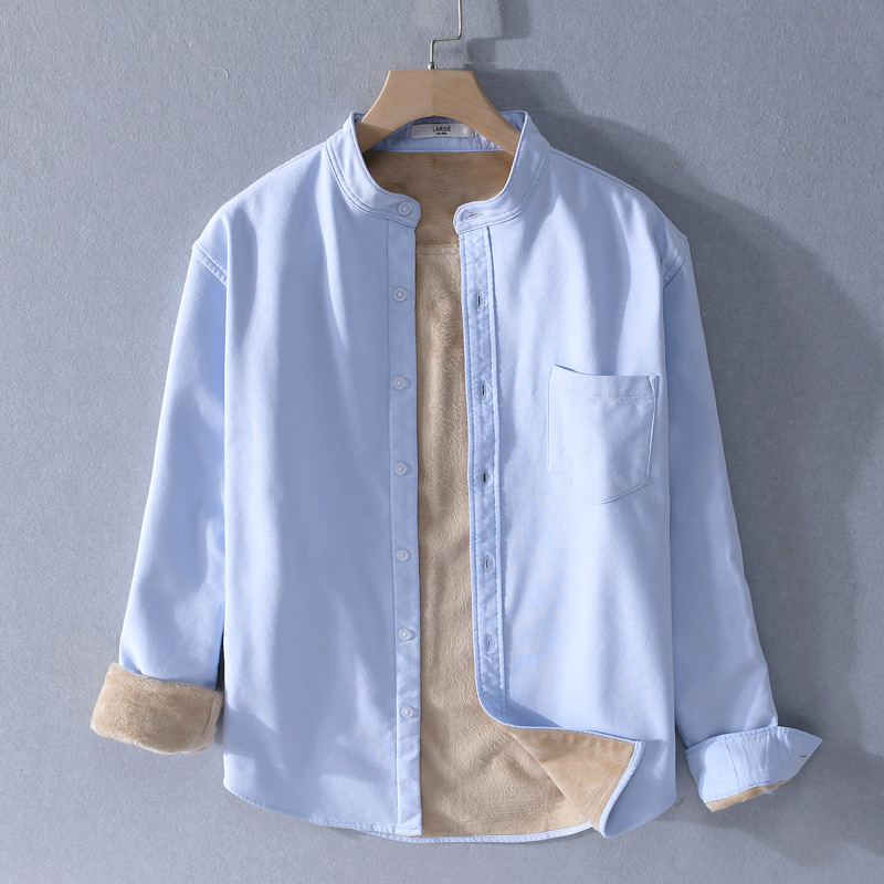기모 남자의 따뜻한 캐주얼 셔츠 청소년 슬림핏 한국 스타일 세로 칼라 두꺼운 면 청소년 셔츠 재킷 트렌디 9308스토어 가기