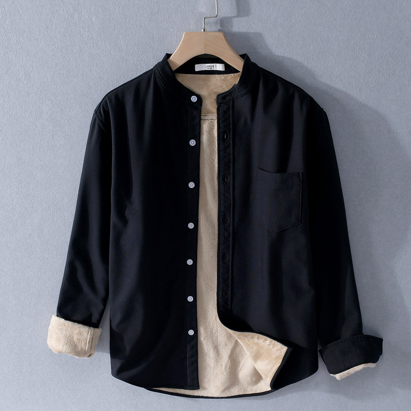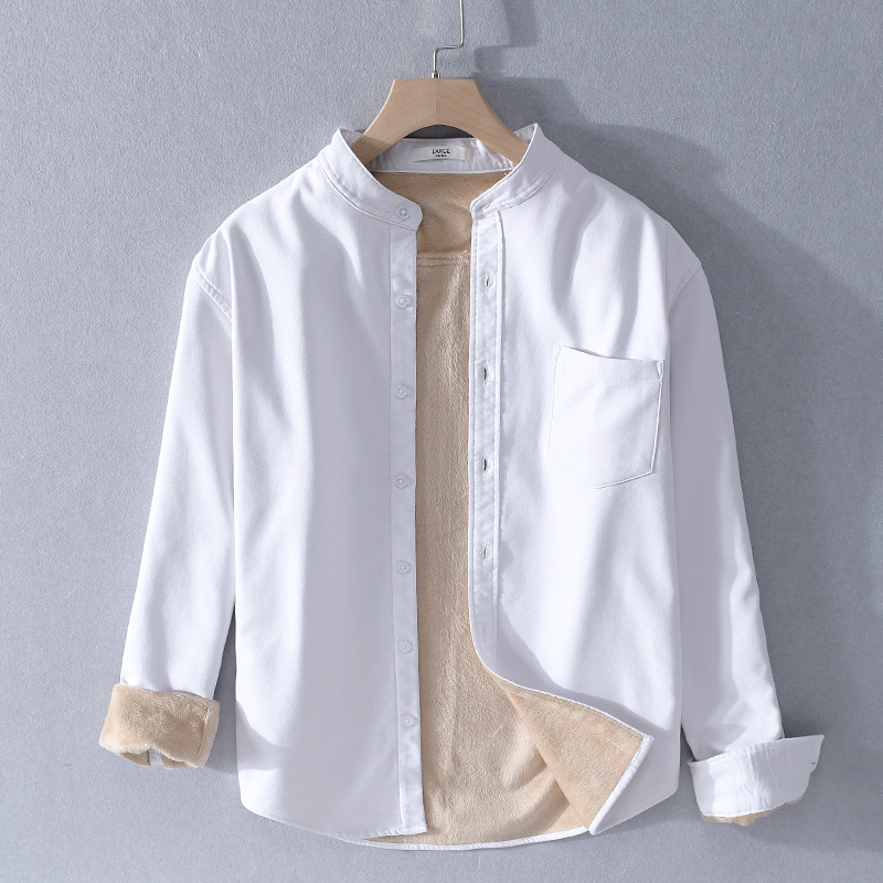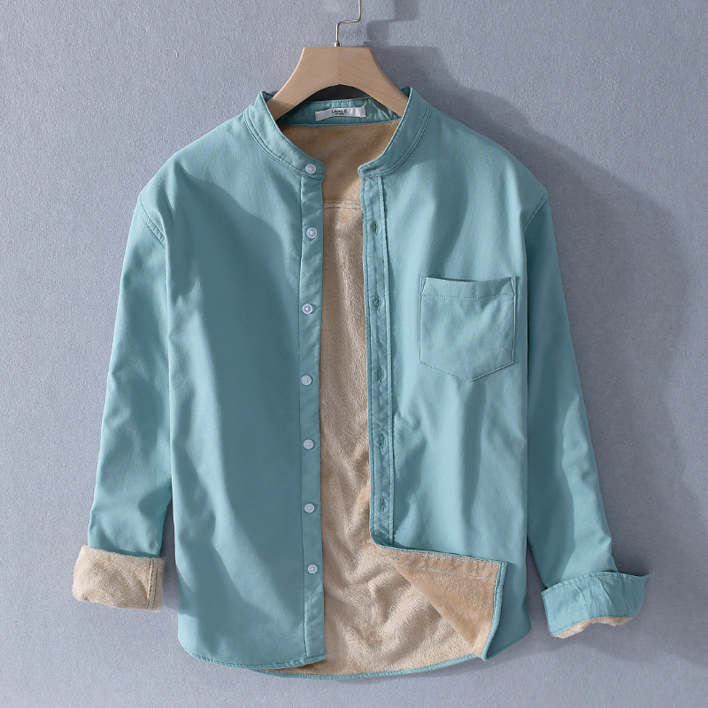 기모 남자의 따뜻한 캐주얼 셔츠 청소년 슬림핏 한국 스타일 세로 칼라 두꺼운 면 청소년 셔츠 재킷 트렌디 9308