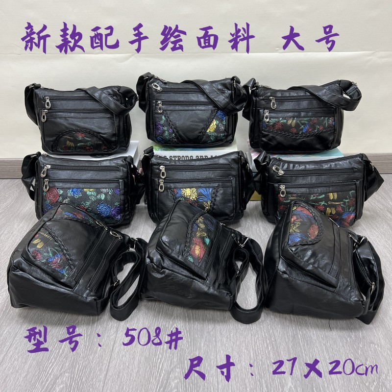 중년 PU 여성 가방 대용량 숄더백 메신저 백 노점 달리기 장후 29 위안 모델 워시 가죽 가방스토어 가기