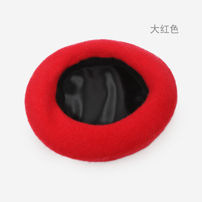 【내부 안감이 있는 큰 모자】54-60CM 베레모 양모 가을 겨울 두꺼운 우아한 탄력 있는 고무줄 땀띠