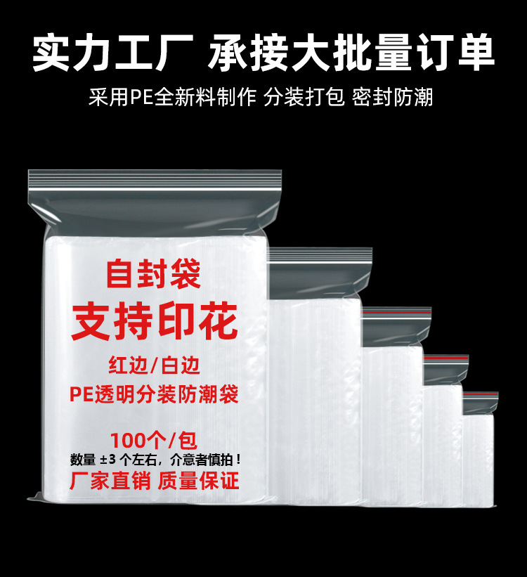 재고 자체 밀봉 가방 비닐 봉투 포장 가방 뼈 가방 스몰 사이즈 플라스틱 PE 비닐 봉투 투명 밀봉 가방