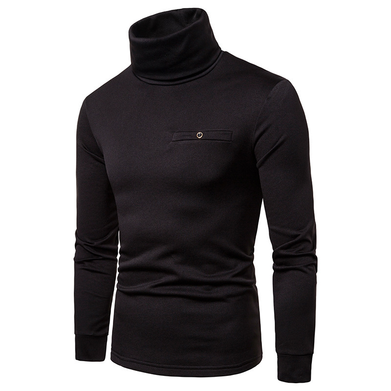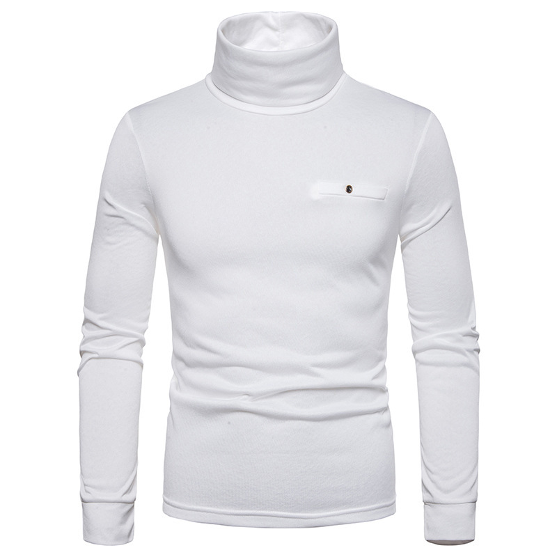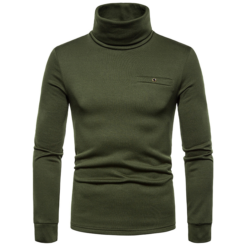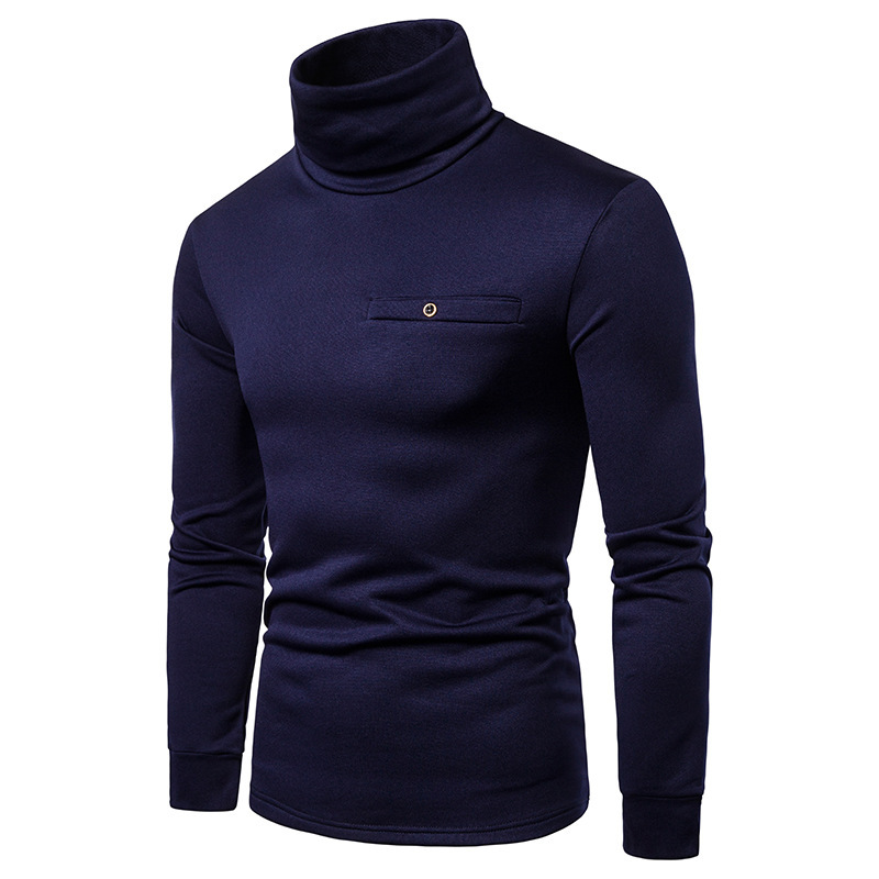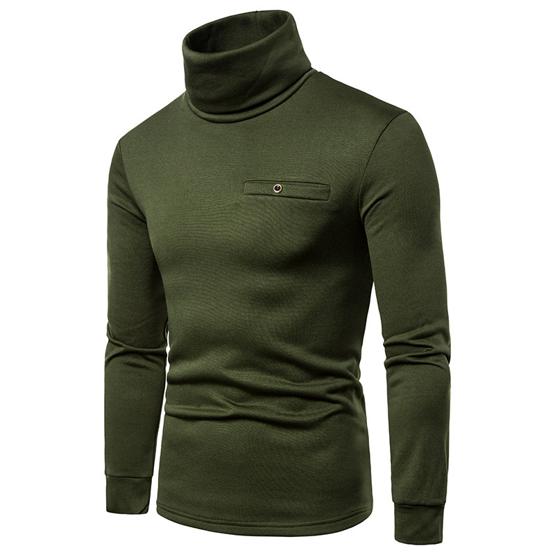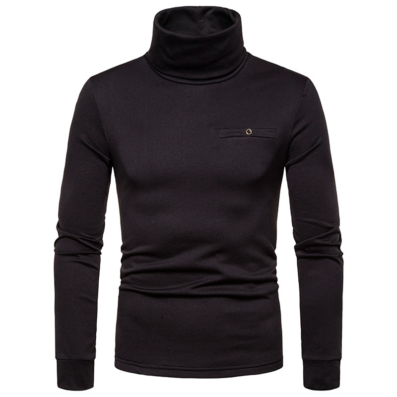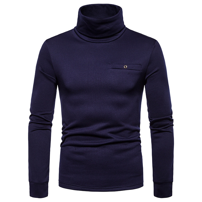 크로스 보더 남성용 플러스 사이즈 기모 하이 칼라 긴팔 티셔츠 가슴 포켓 남성용 장식 단색 기본 셔츠