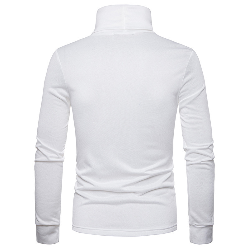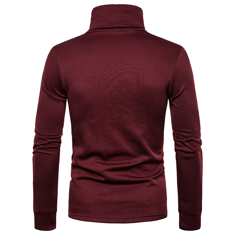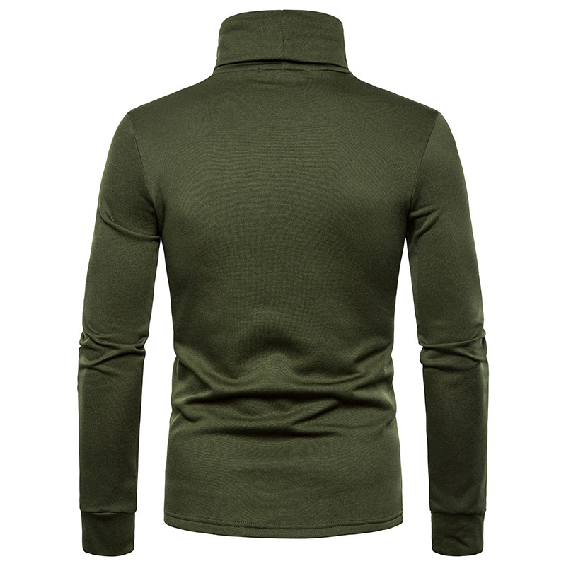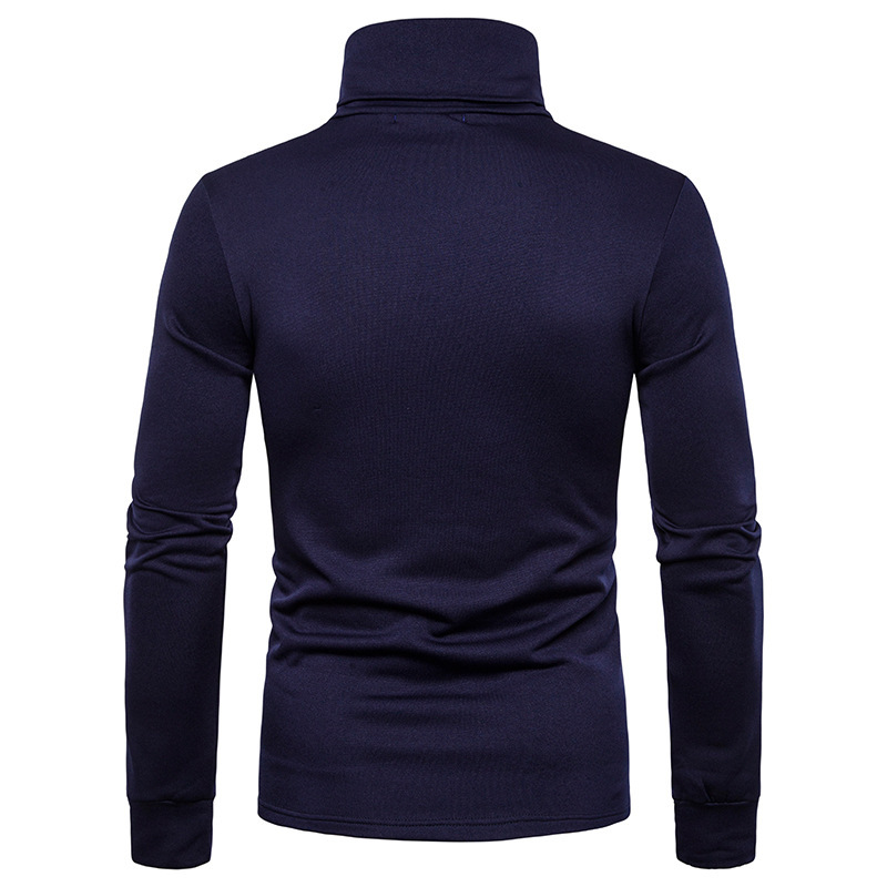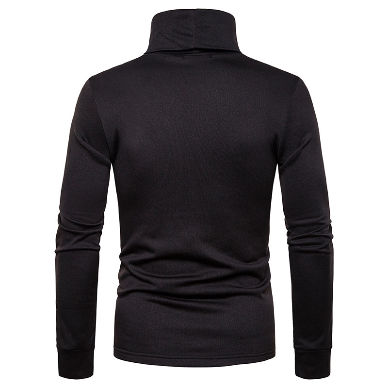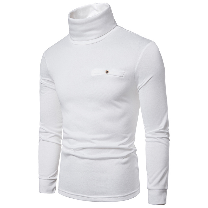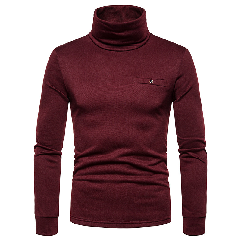 크로스 보더 남성용 플러스 사이즈 기모 하이 칼라 긴팔 티셔츠 가슴 포켓 남성용 장식 단색 기본 셔츠