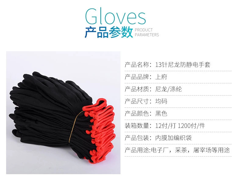 • 블랙 레드 엣지 나일론 장갑 [12쌍]