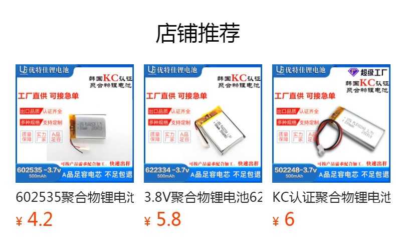 KC 인증 폴리머 리튬 배터리 502248-500mAh 차폐기 네비게이터 레코더 3.7V 리튬 배터리스토어 가기