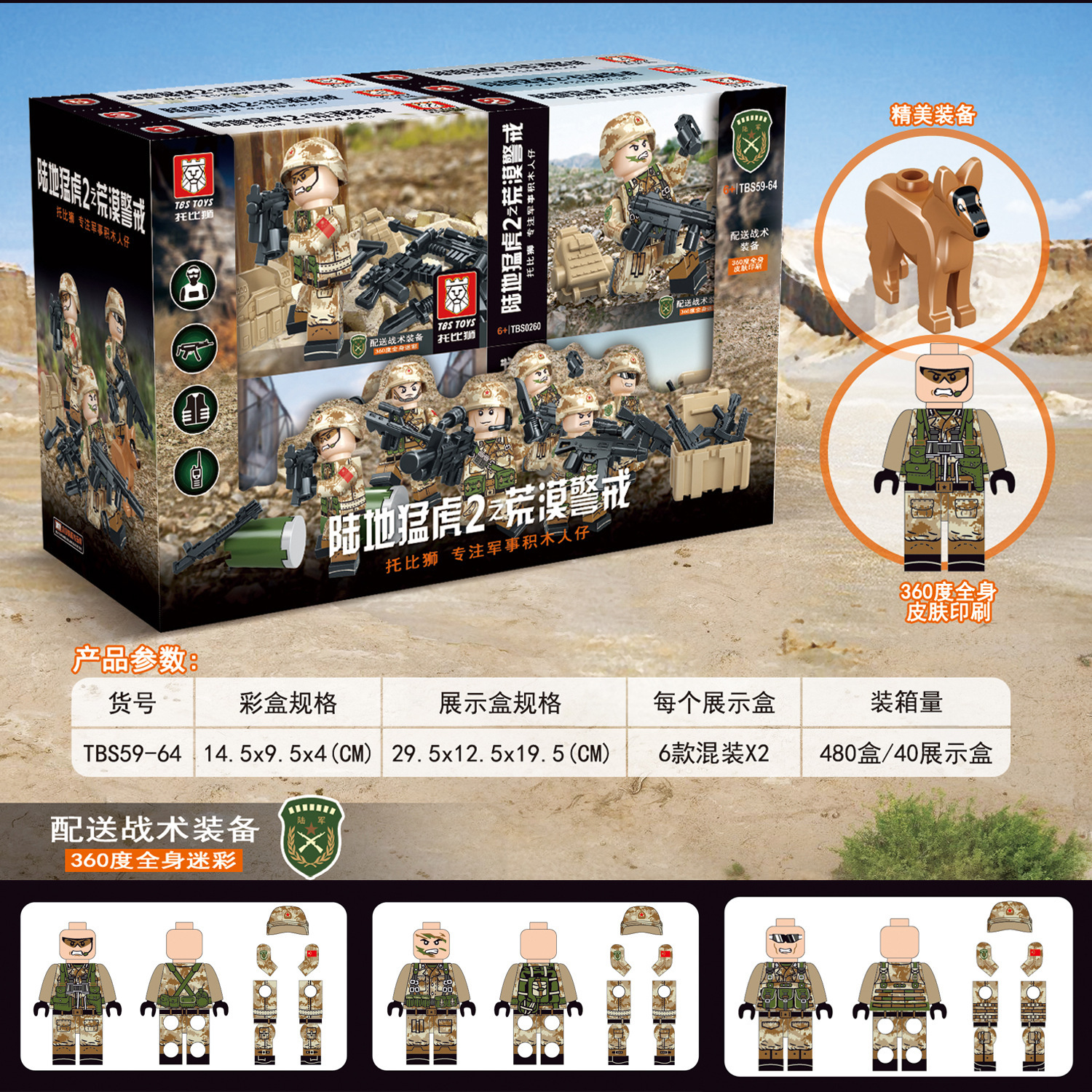 【产品名称】:托比狮TBS59-64陆地猛虎之荒漠警戒军事系列儿童组装积木人仔玩具