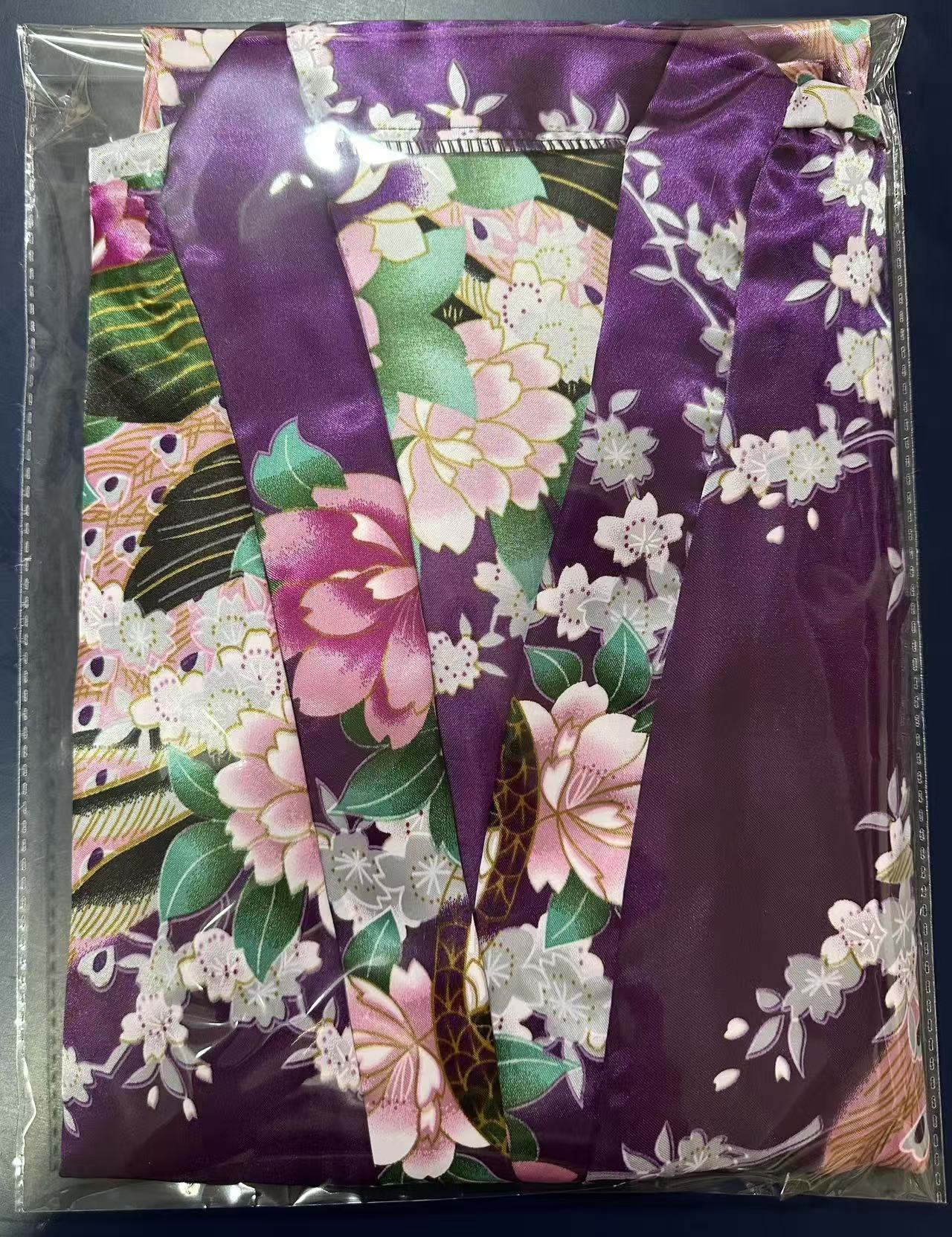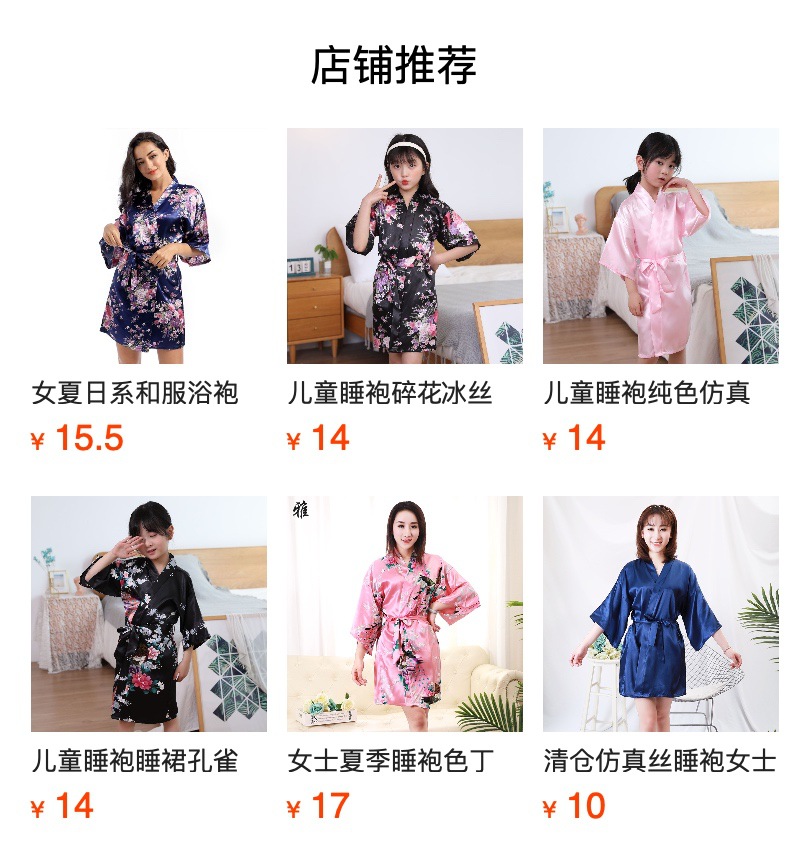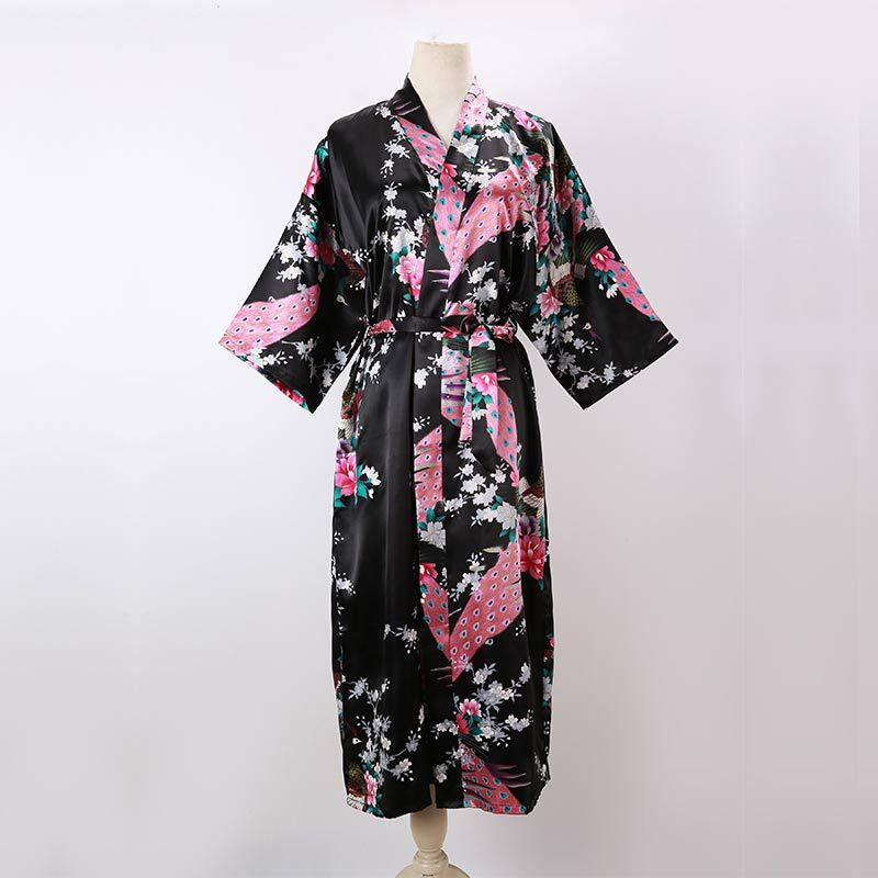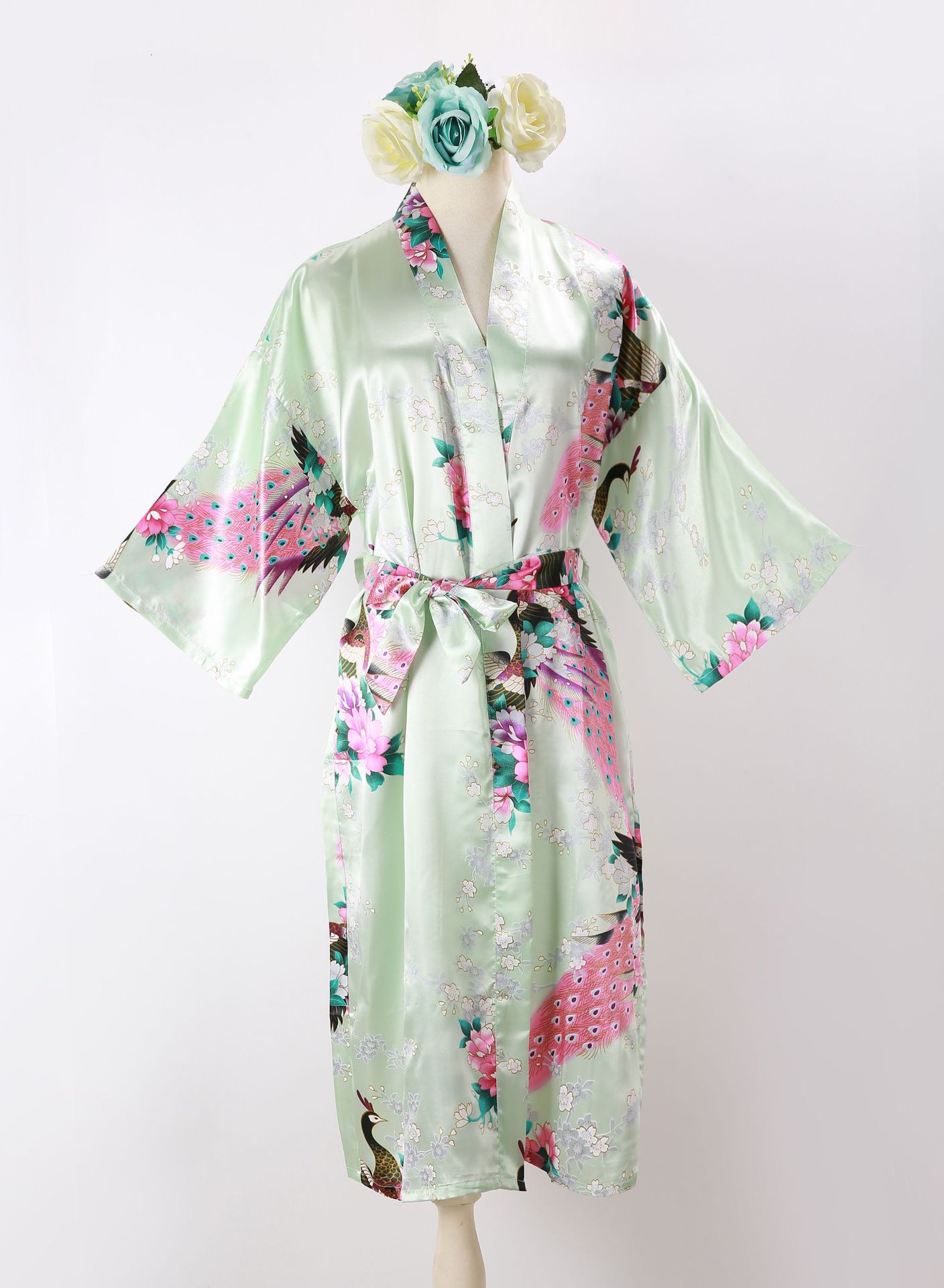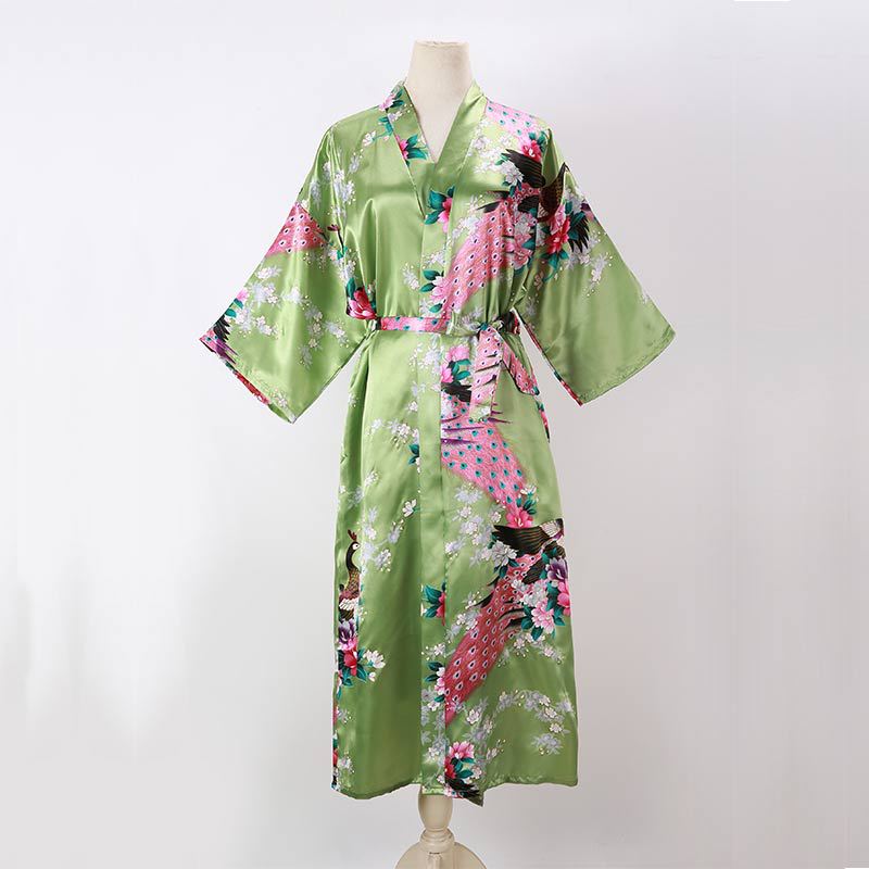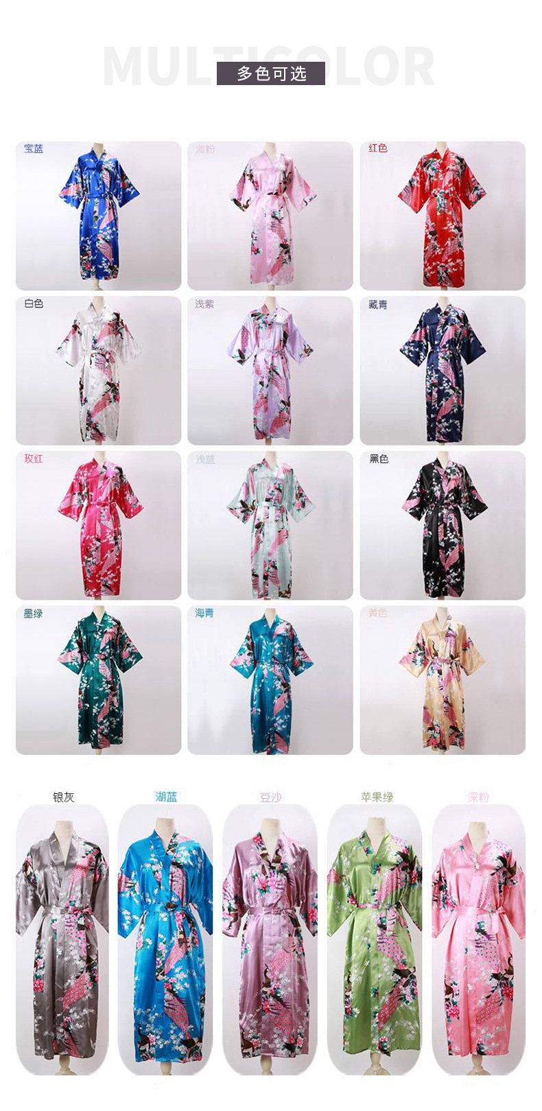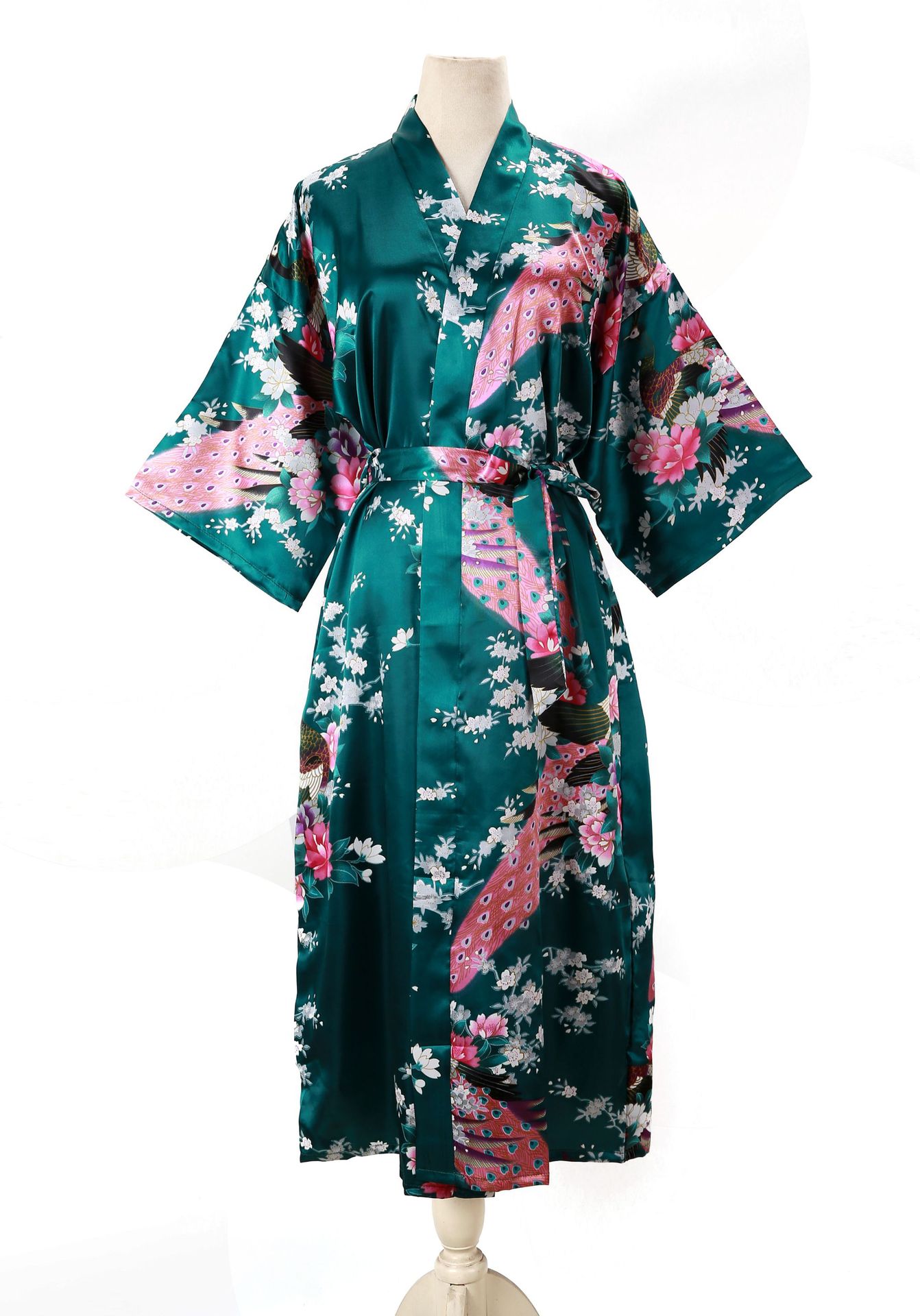 여성 섹시 롱 잠옷 여름 기모노 가운 얇은 공작새 프린트 목욕 가운 모조 실크 기모노 잠옷 대외 무역스토어 가기