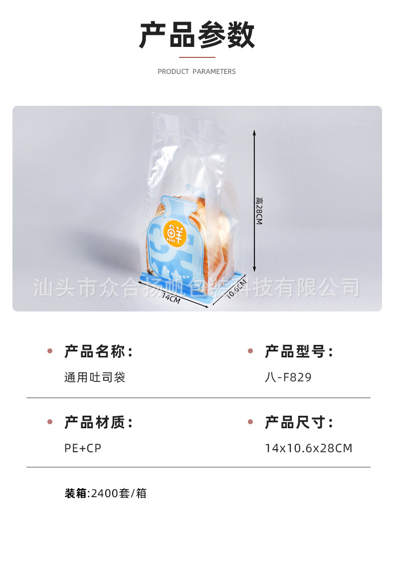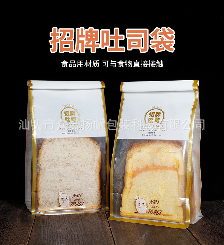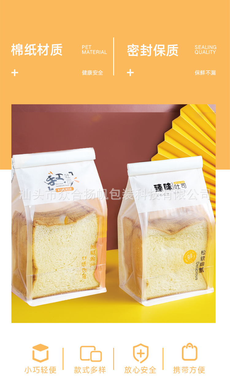 8 개의 사이드 씰 5-6 조각 토스트 백 일회용 눈송이 케이크 건조 포장 가방 중국 패스트리 포장 가방스토어 가기