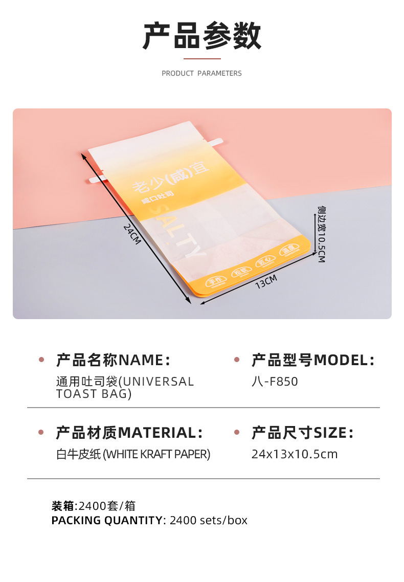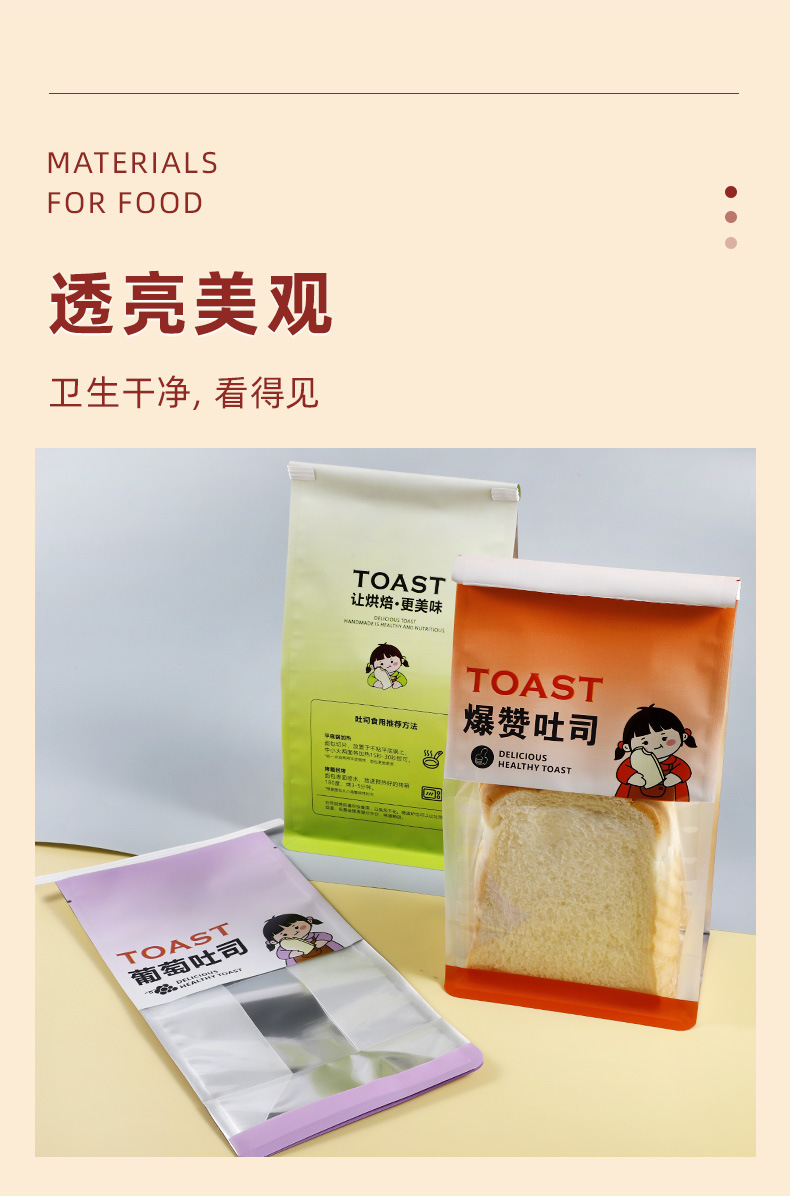 8 개의 사이드 씰 5-6 조각 토스트 백 일회용 눈송이 케이크 건조 포장 가방 중국 패스트리 포장 가방