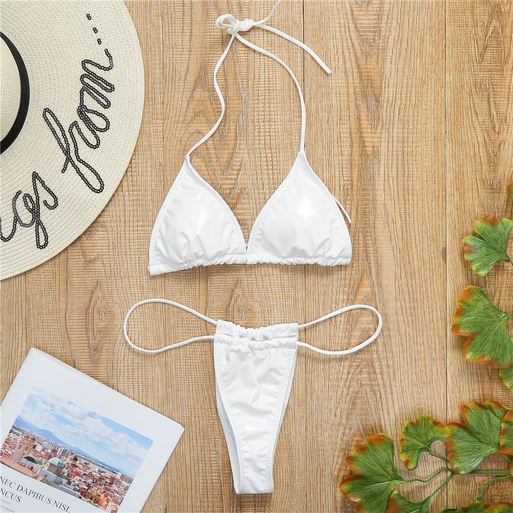 크로스 보더 새로운 밝은 가죽 패브릭 단색 삼각형 컵 섹시 스트랩 끈 비키니 폭발 수영복 ZY020