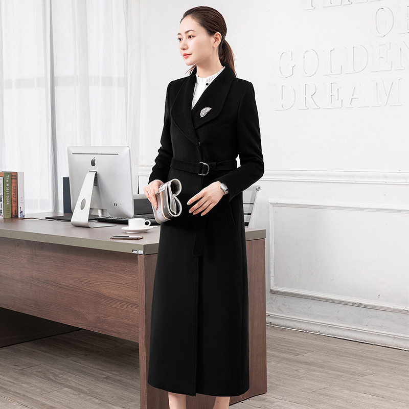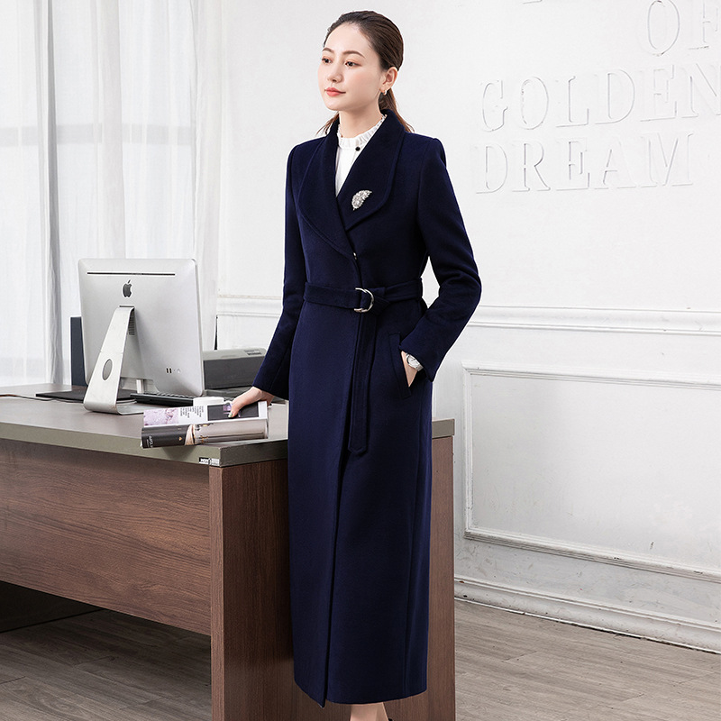전문 모직 코트 여자 중학교 긴 겨울 더블 브레스트 바지 모직 코트 호텔 프런트 데스크 두꺼운스토어 가기