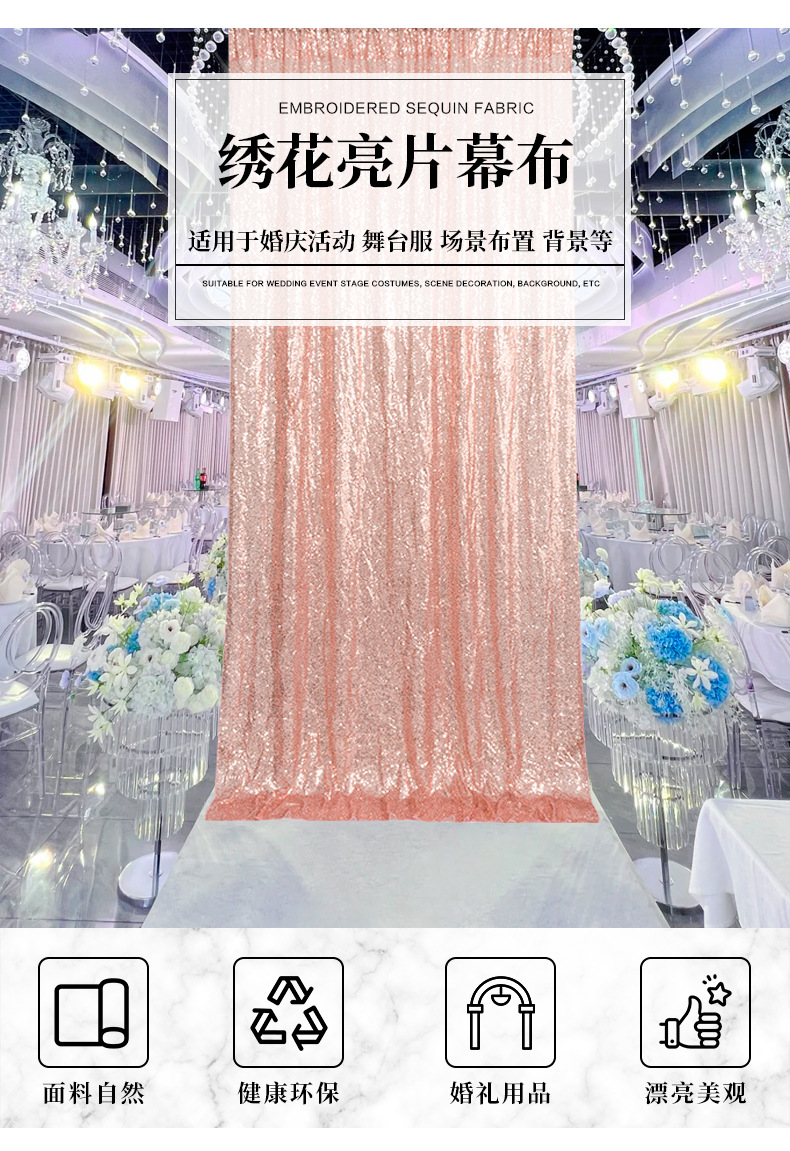 공장 도매 호텔 결혼식 연회 장면 배경 커튼 인 실버 로즈 골드 자수 천 장식 조각 커튼