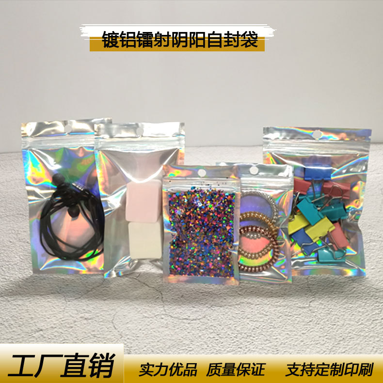 매직 컬러 자체 밀봉 백 레이저 음양 밀봉 백 반투명 보석 레인보우 씰 포켓 데이터 라인 플래시 포장 백스토어 가기