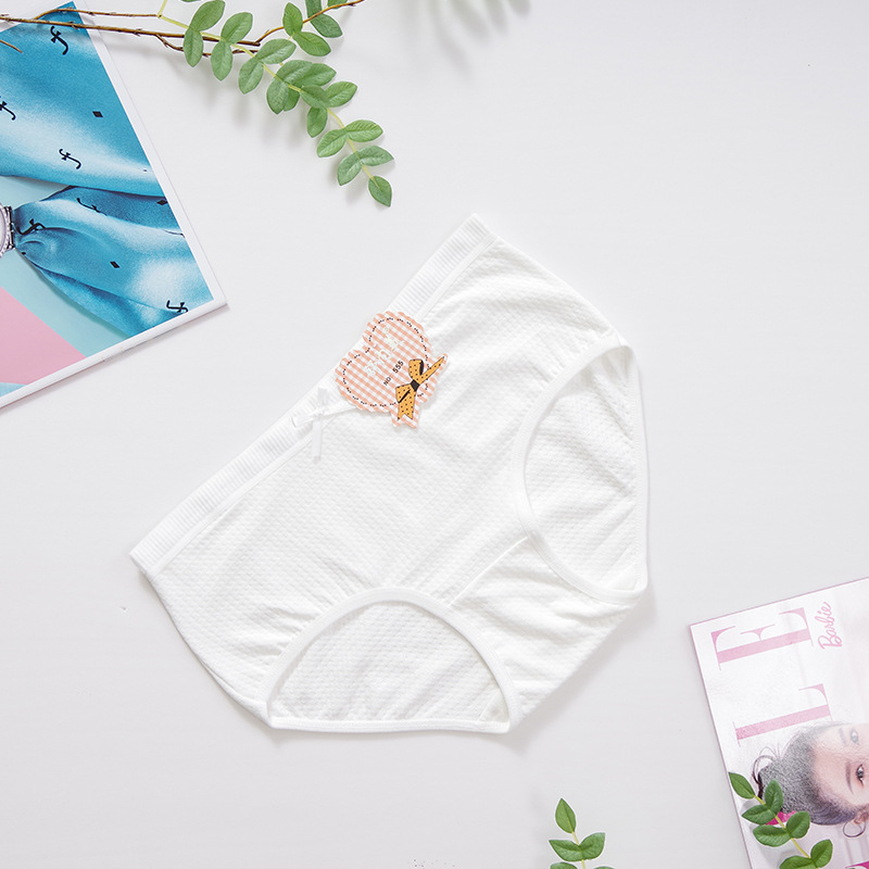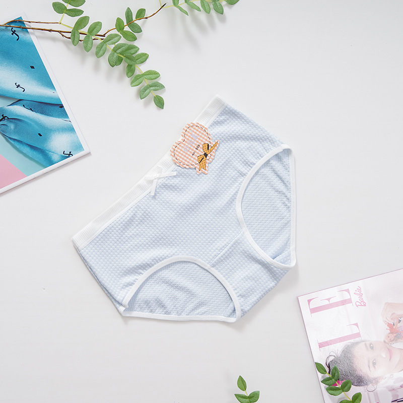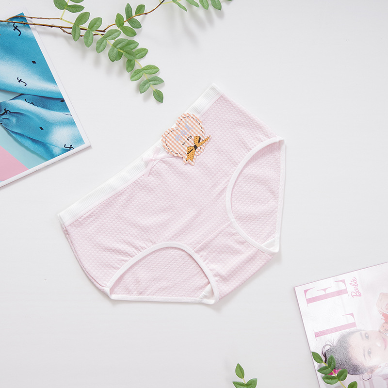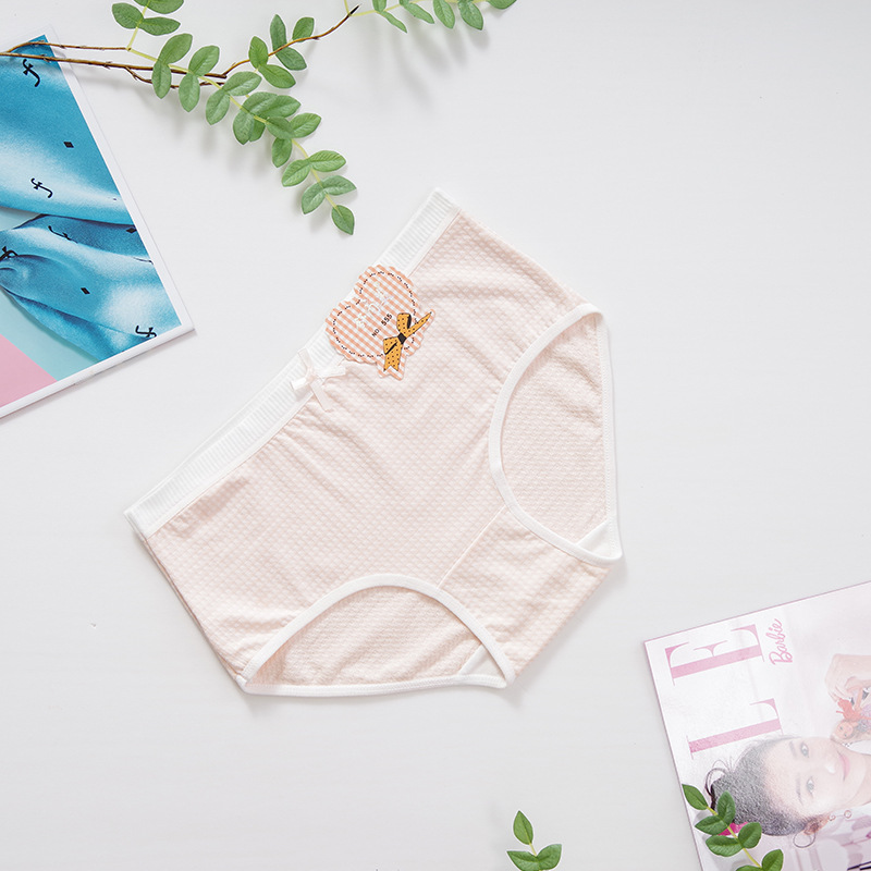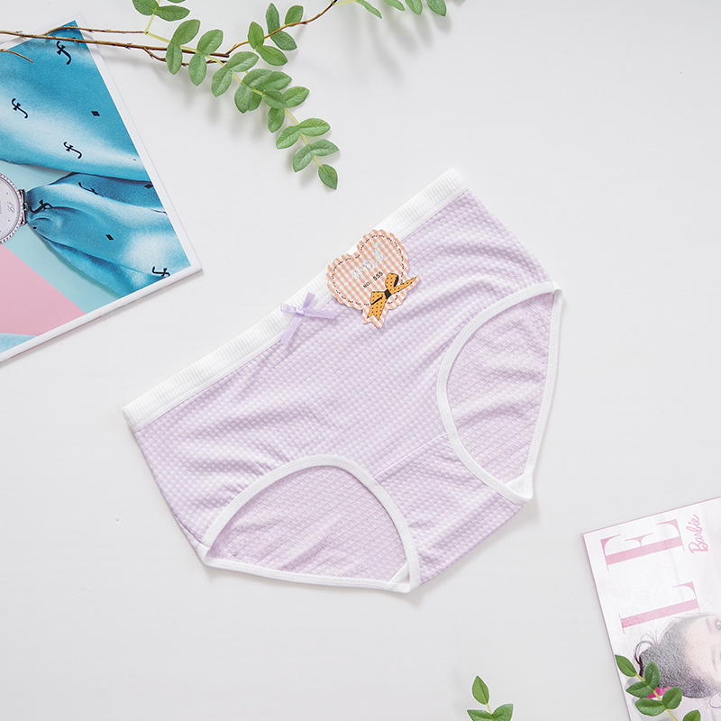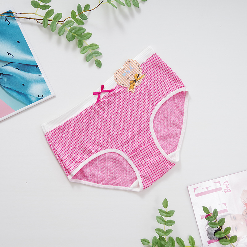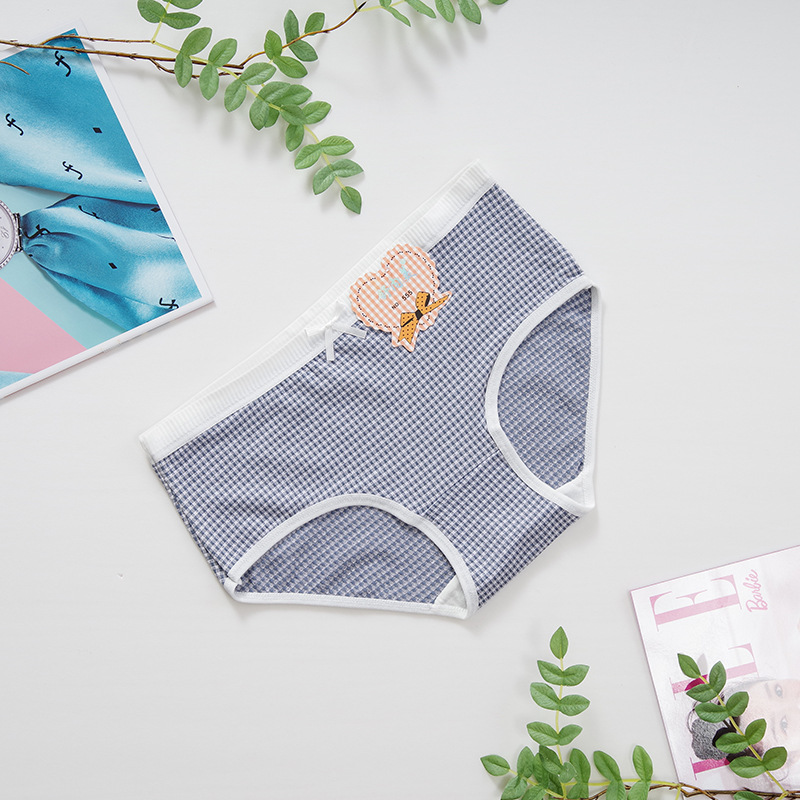 도매 555 격자 무늬 중간 허리 활 소녀 속옷 면화 달콤한 통기성 편안한 숙녀 속옷스토어 가기