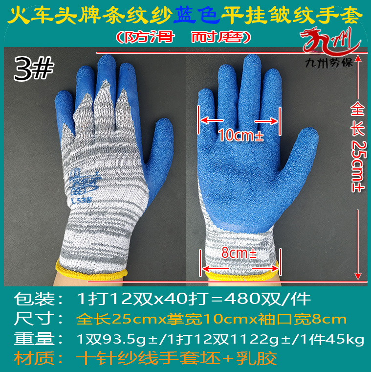 3#火车头牌条纹纱蓝胶1打*12双*40打=480双/袋01873#;