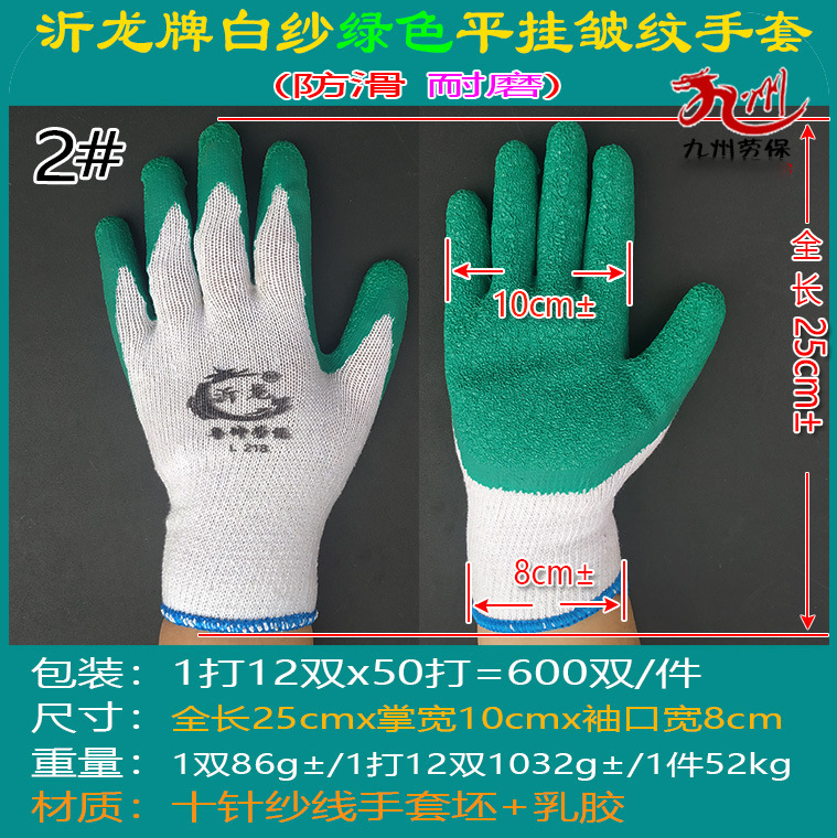 2#沂龙牌白纱绿胶,1打*12双*50打=600双/袋 00503#;