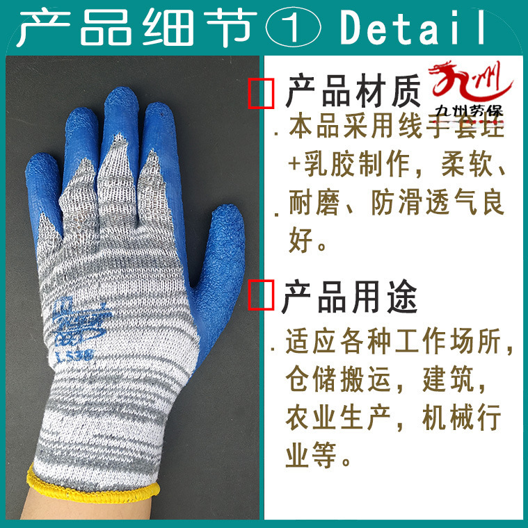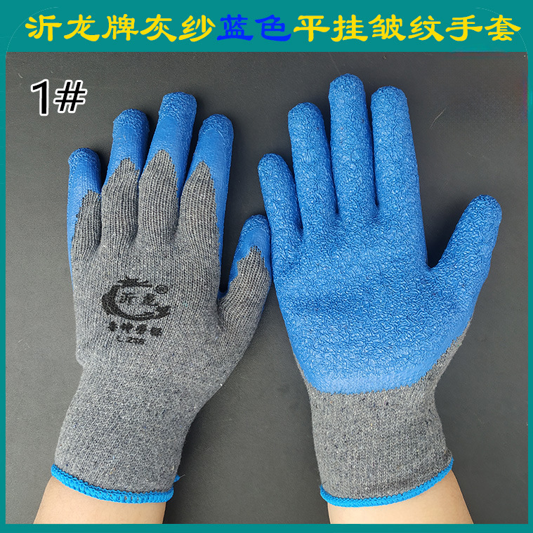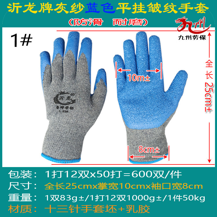 【手套重量】:1#沂龙牌灰纱蓝胶,约50kg/袋;单双重量约83g