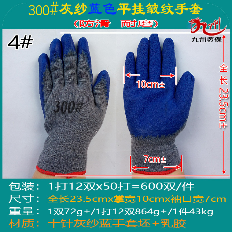 4#300#灰纱蓝胶,1打*12双*50打=600双/袋 01957#;