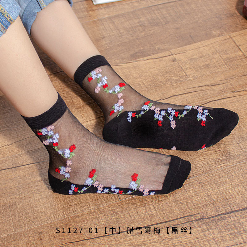 Xingnan 봄과 여름 새로운 크리스탈 스타킹 어린이 중간 튜브 꽃 섹시한 얇은 안티 후크 실크 투명 면 바닥 스타킹스토어 가기