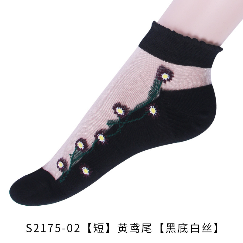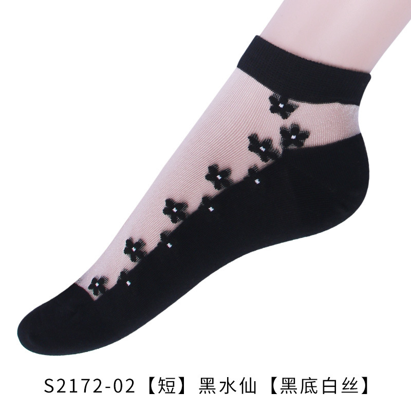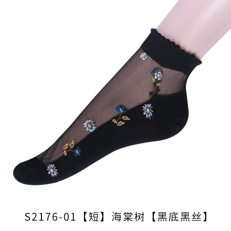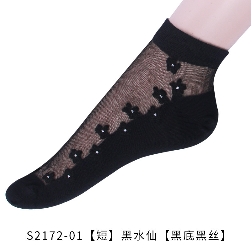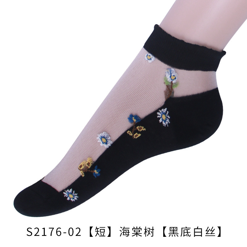 Xingnan 봄과 여름 새로운 크리스탈 스타킹 어린이 중간 튜브 꽃 섹시한 얇은 안티 후크 실크 투명 면 바닥 스타킹