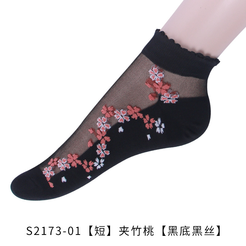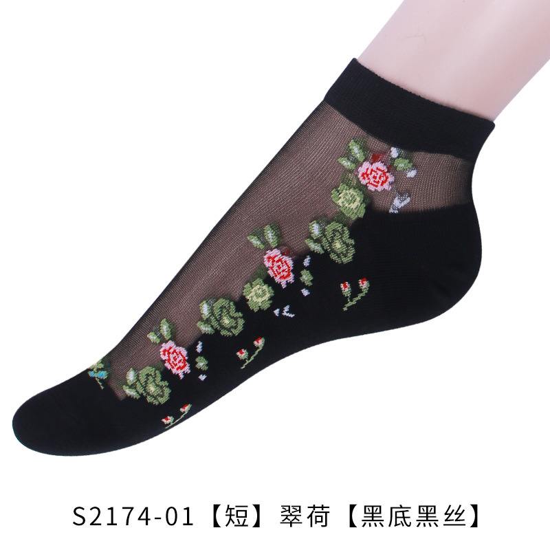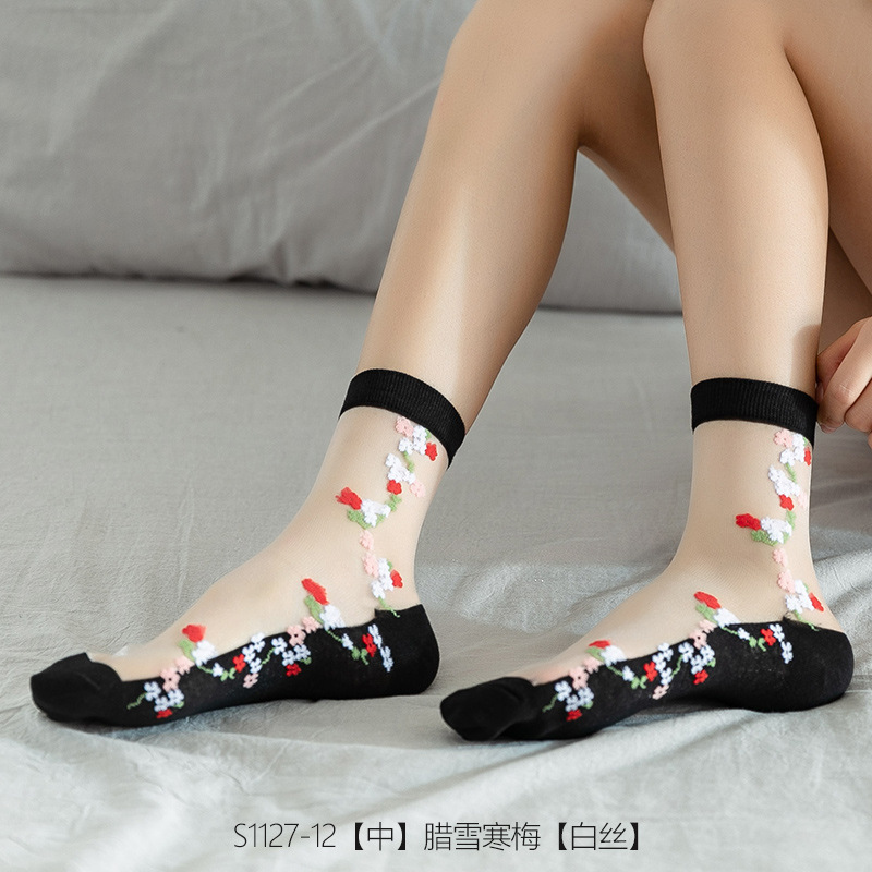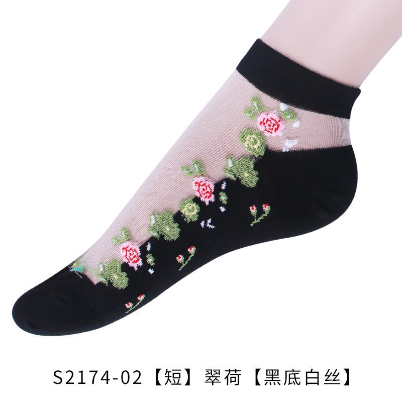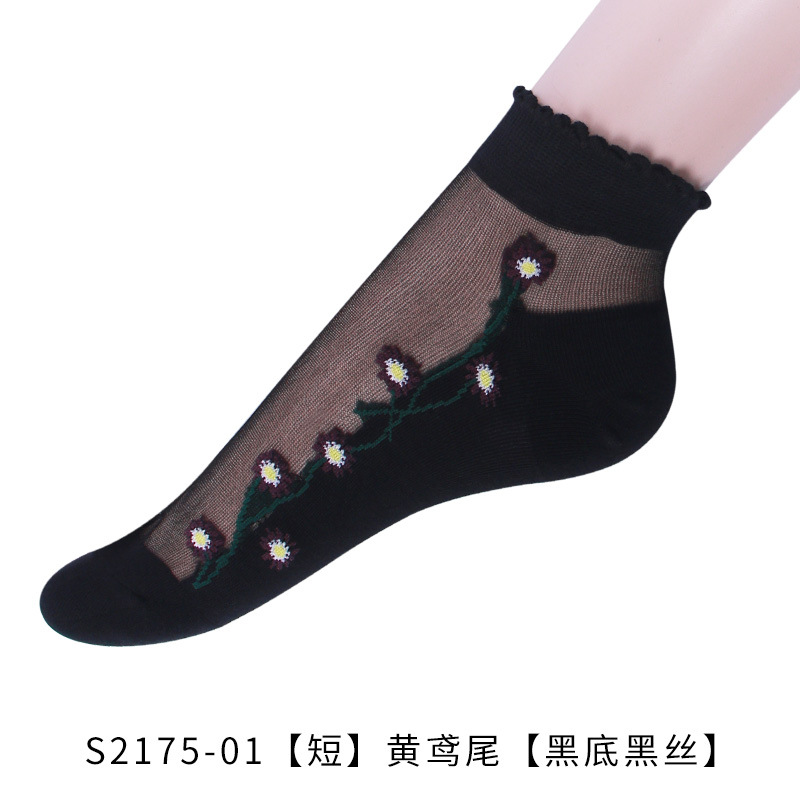 Xingnan 봄과 여름 새로운 크리스탈 스타킹 어린이 중간 튜브 꽃 섹시한 얇은 안티 후크 실크 투명 면 바닥 스타킹