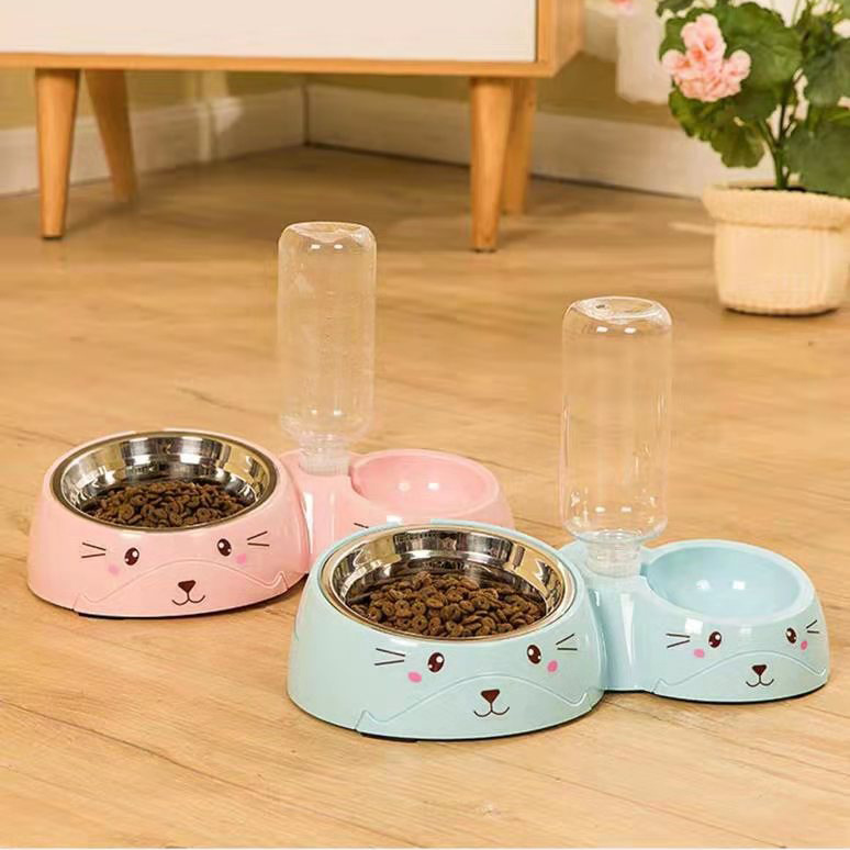 공장 뜨거운 판매 애완 동물 용품 스테인레스 스틸 그릇 주전자 더블 그릇 세트 경제적 인 자동 피더 개 그릇 고양이 그릇스토어 가기
