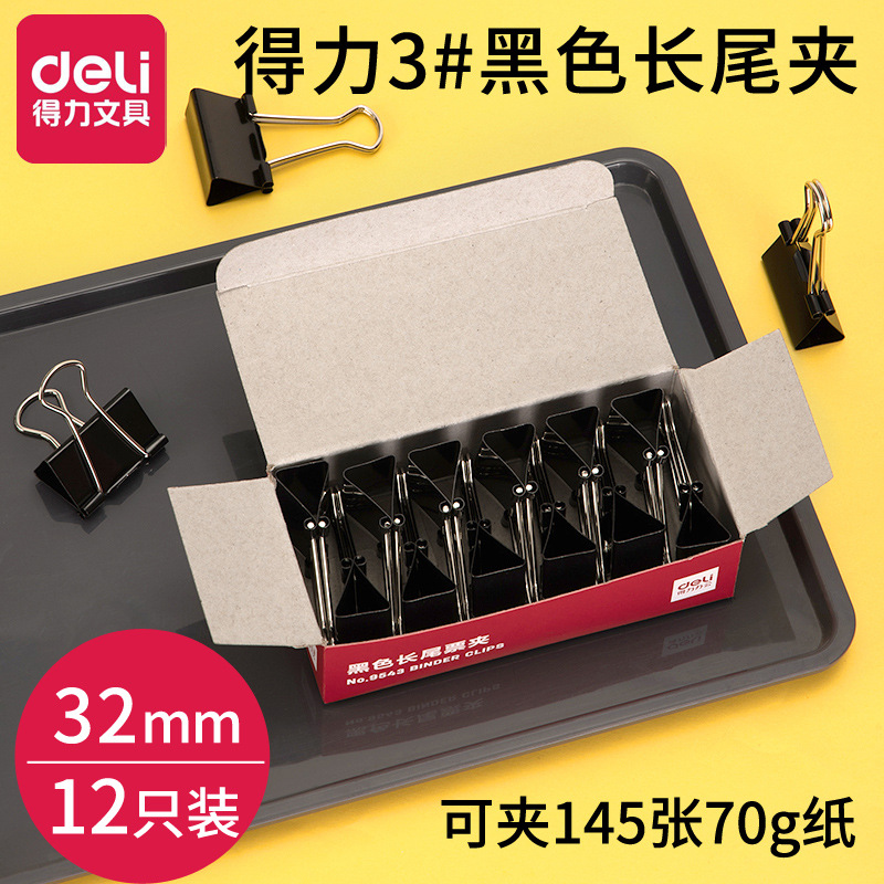 델리 문구 9543 블랙 롱 테일 티켓 클립 3 #32mm 티켓 클립/더브테일 클립/데이터 클립 12