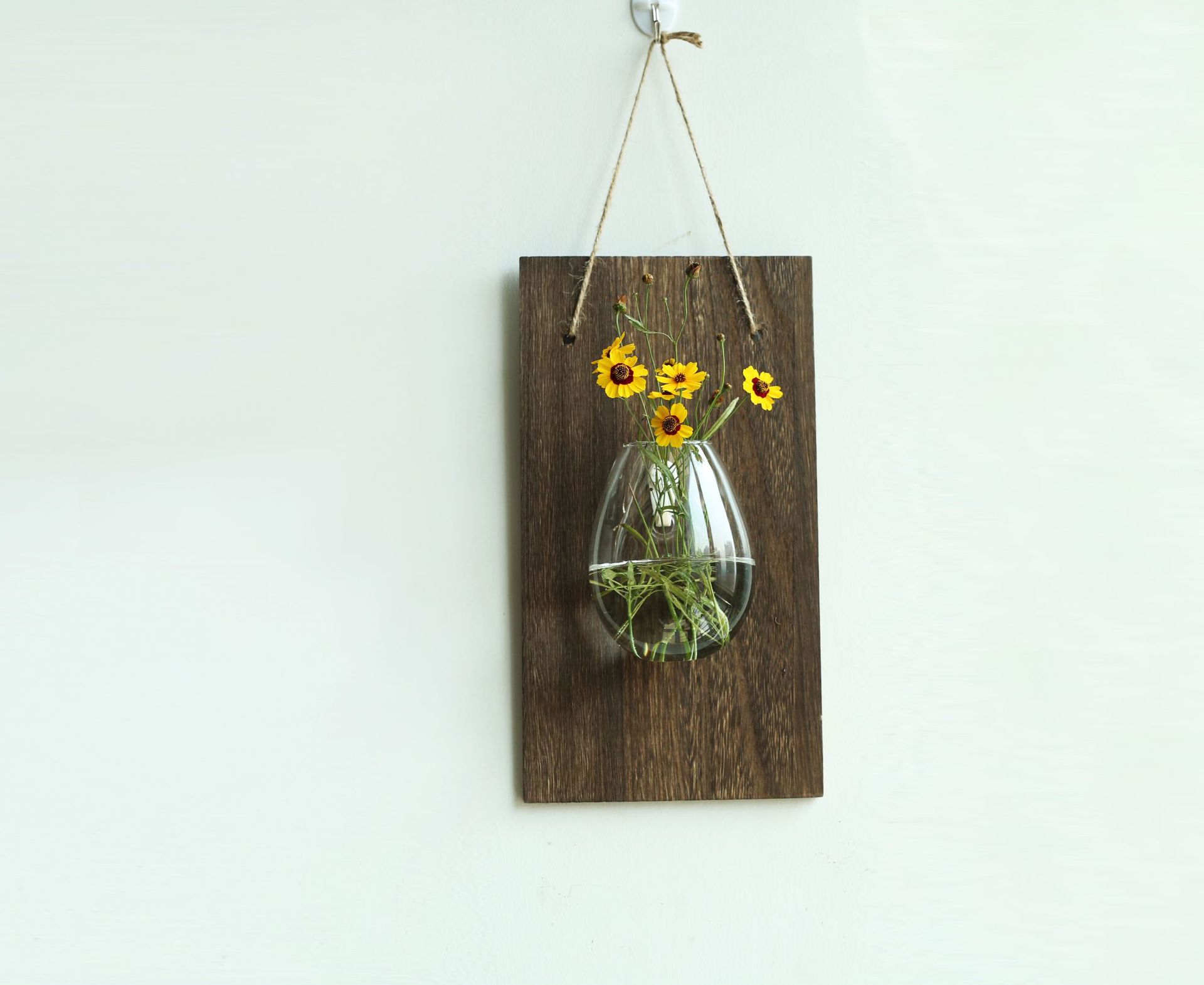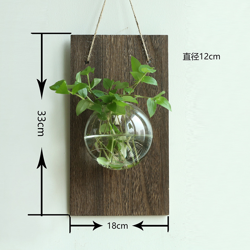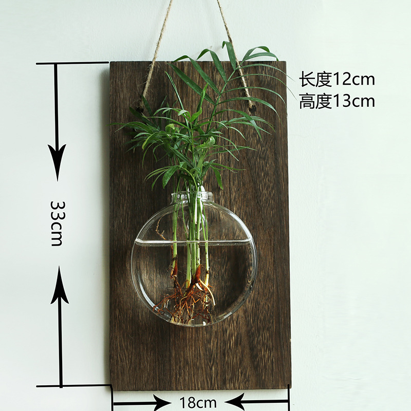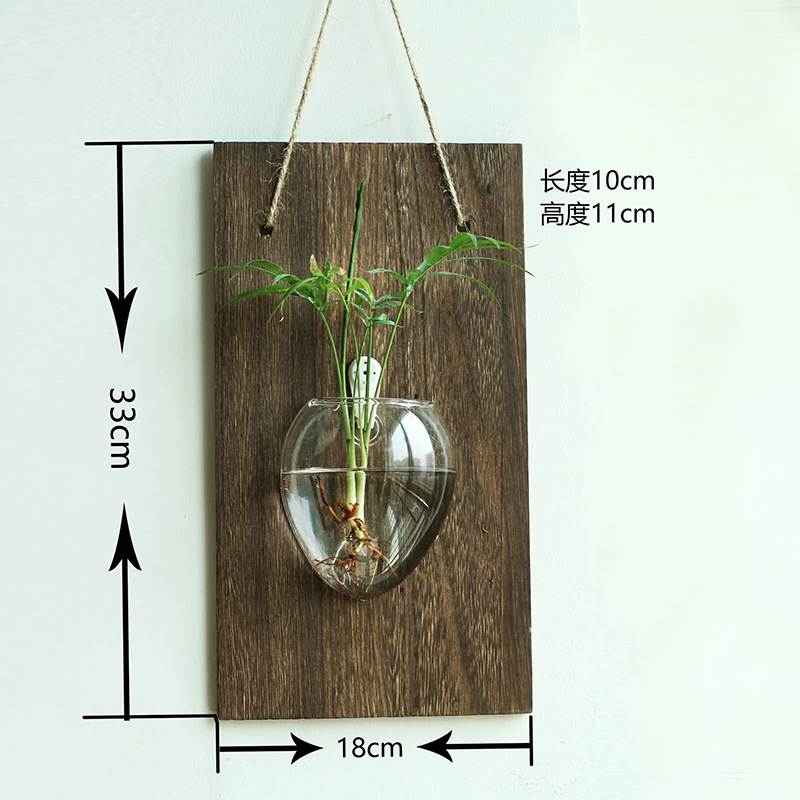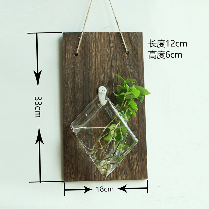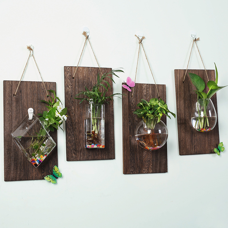 단단한 나무 창조적 인 가정 벽 교수형 벽 배경 장식 수경 식물 벽 교수형 녹색 유리 꽃병스토어 가기