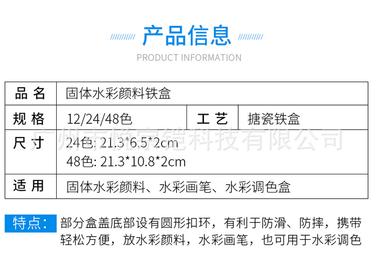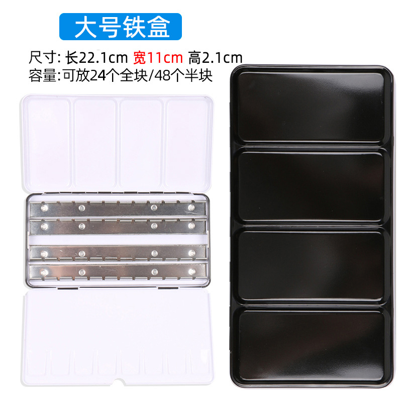 단색 수채화 페인트 빈 상자 검정 무거운 에나멜 수채화 페인트 포장 소 격자 철 상자 12 색 24 색 48 색스토어 가기