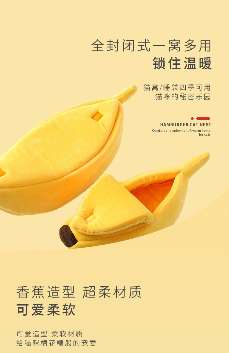 공장 직접 애완 동물 용품 둥지 바나나 고양이 개집 개 사육장 겨울 따뜻한 깊은 수면 고양이 침낭 원활한 생성스토어 가기