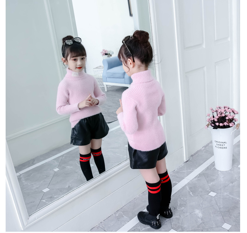 아동 터틀넥 니트 스웨터 중형 및 대형 아동복 아기 기모 한국베이스 셔츠 새로운 학생 교복 스웨터