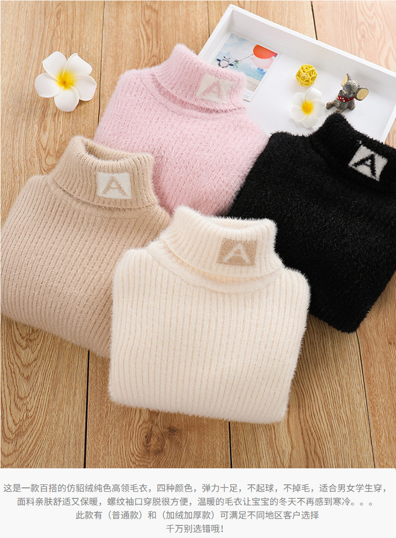 아동 터틀넥 니트 스웨터 중형 및 대형 아동복 아기 기모 한국베이스 셔츠 새로운 학생 교복 스웨터스토어 가기