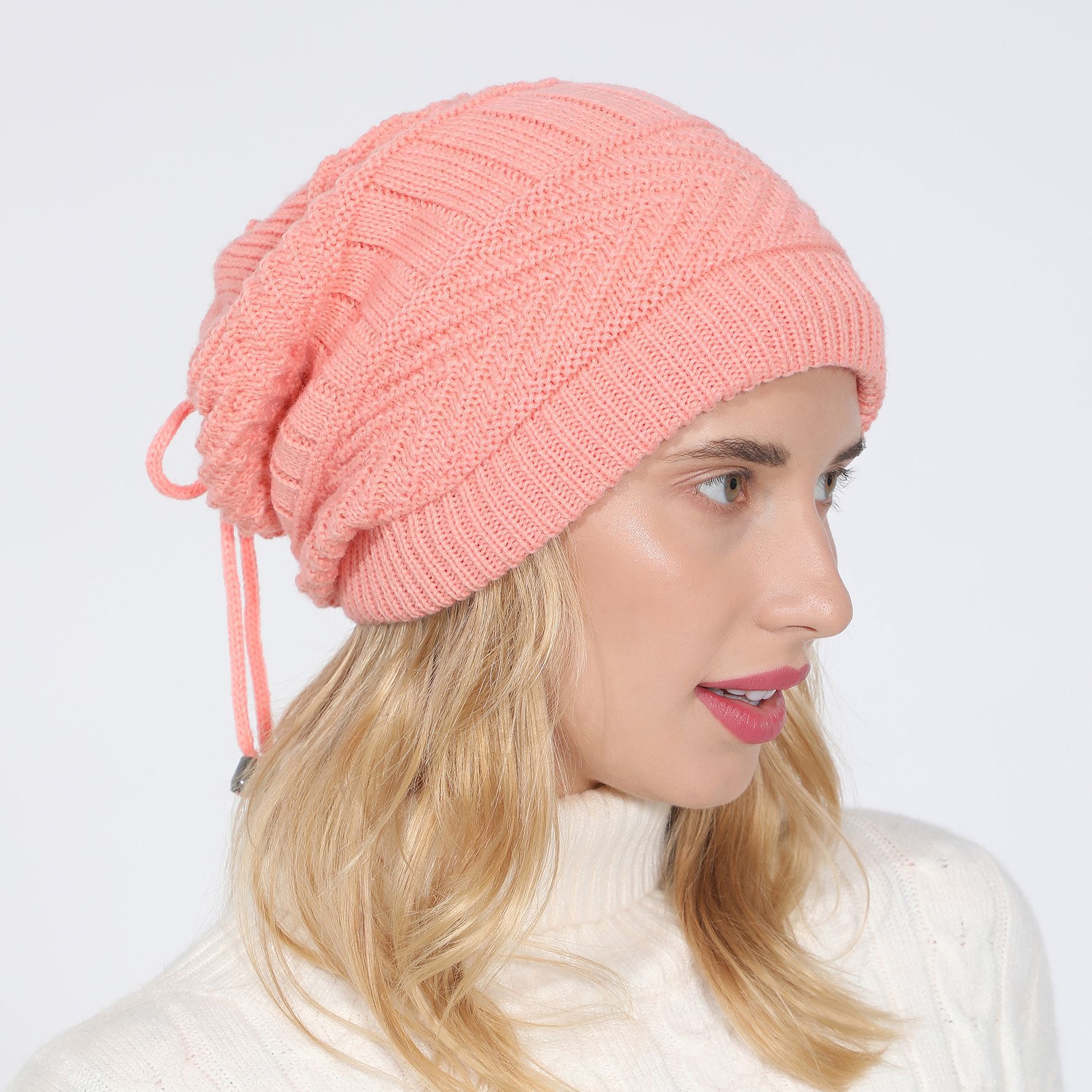 M1019 모자와 목도리 2-in-1 풀오버 모자 가을 겨울 신상 여성용 플리스 안감 보온 방한 니트 귀덮개 모자스토어 가기
